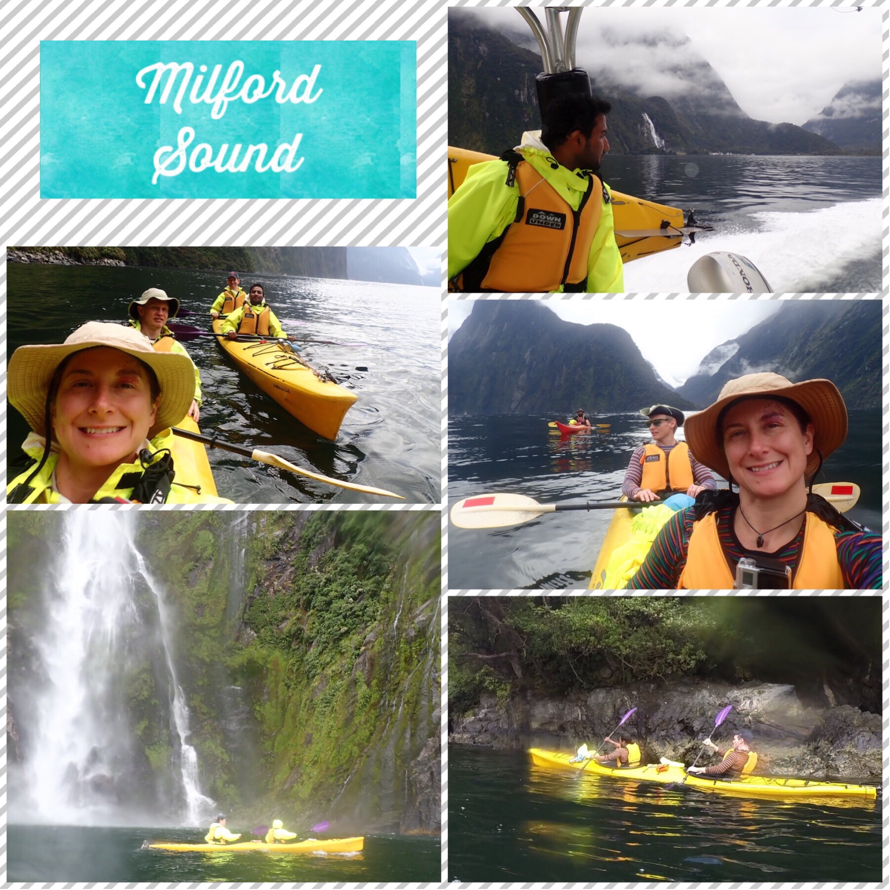 Today was our Milford Sound kayaking day! This is as far south as we are going and it is a bit of a tourist destination but we got lucky and only had 2 other people in our kayak group. Roscoe’s Milford Kayaks sent us out with Olly (Ollie?) in our tandem kayaks for the boat assisted 5 hr paddle around Milford Sound. During the briefing, Olly had Josh demo the pfd adjustment and refered to him as a bit of a unit (google absolute unit for the reference)!