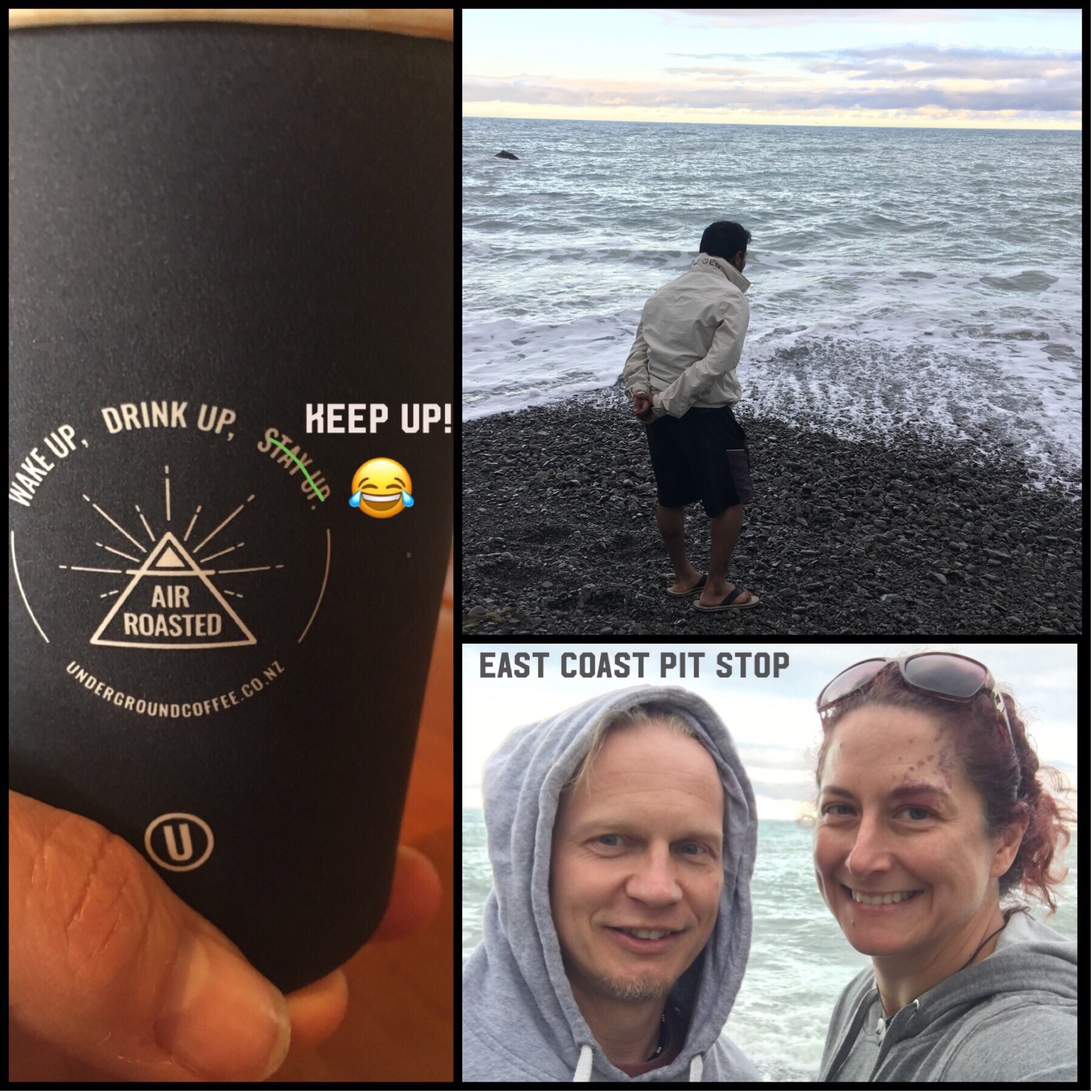 We hit the road for F@cking Ferry Day; Part 2 and the big drive back to Picton. A short lunch break introduced me to my new personal hiking logo thanks to Steve and my coffee: “Wake Up, Drink Up, Keep Up”! As we were heading back to the car, I spotted a merino shop and sprinted over in the search for yarn! No yarn was found be we did find the striped thermal shirts that we wore during the kayaking. Unfortunately when I unpacked mine at the end of the day, I had actually purchased a pair of leggings instead of a shirt 🤦♀️!