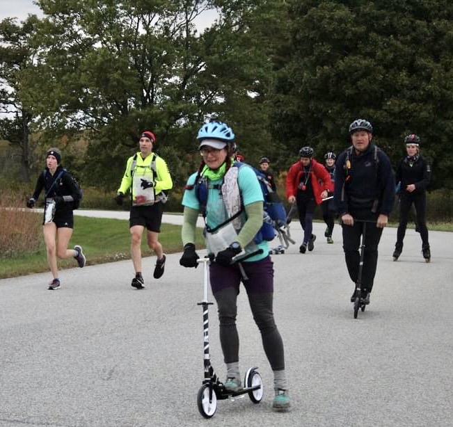 Race day morning was cool and overcast. We hit the Dunkin Donuts for breakfast and coffee and made it to the TA with time to spare. At 7:50 am Brian let us know that the first leg would be via scooter/skates if we had them and that we’d get a map on course.
