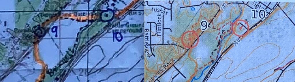 Trek Leg 1: We were given another set of instructions and 3 points to plot, plus a supplemental map for this leg. We technically didn’t have to plot points 9 & 10 but I did anyway since I needed the practice. This led to a critical error on my part, *see bike leg. I got so wrapped up in the big map that I neglected looking at the supplemental one closely. I stuck to the road and was happy with my jogging pace for the most part. I knew #10 was going to be easy, so I didn’t have to follow the map too much. I did wonder if using the pipeline cut was legal since it was almost on top of #9, but it required crossing a largish creek and I played it safe on the roads. From 10 to nine should have been easy, especially if I was looking at the small map, which I was not. Eventually I made my way across the road and down to the small parking lot for the Prophet’s Rock trail. At the top I knew the checkpoint was west of the pipeline cut, but since I wasn’t looking at the small map, I didn’t see the details. I probably spent at least 15 mins looking for this point. After this it was another trek back to the TA. During this section I met up with a couple doing the 4 hr version and we chatted about the sport.