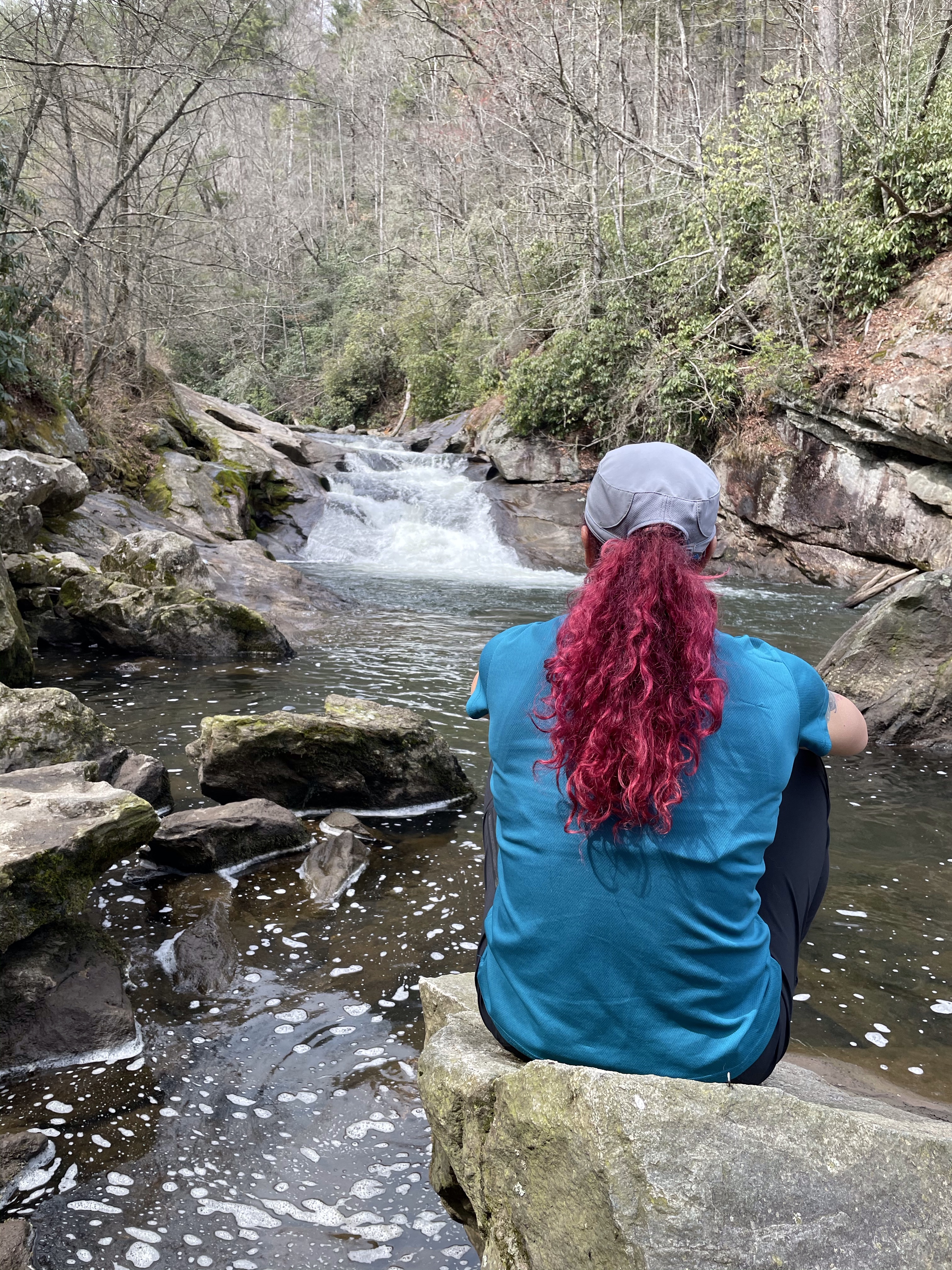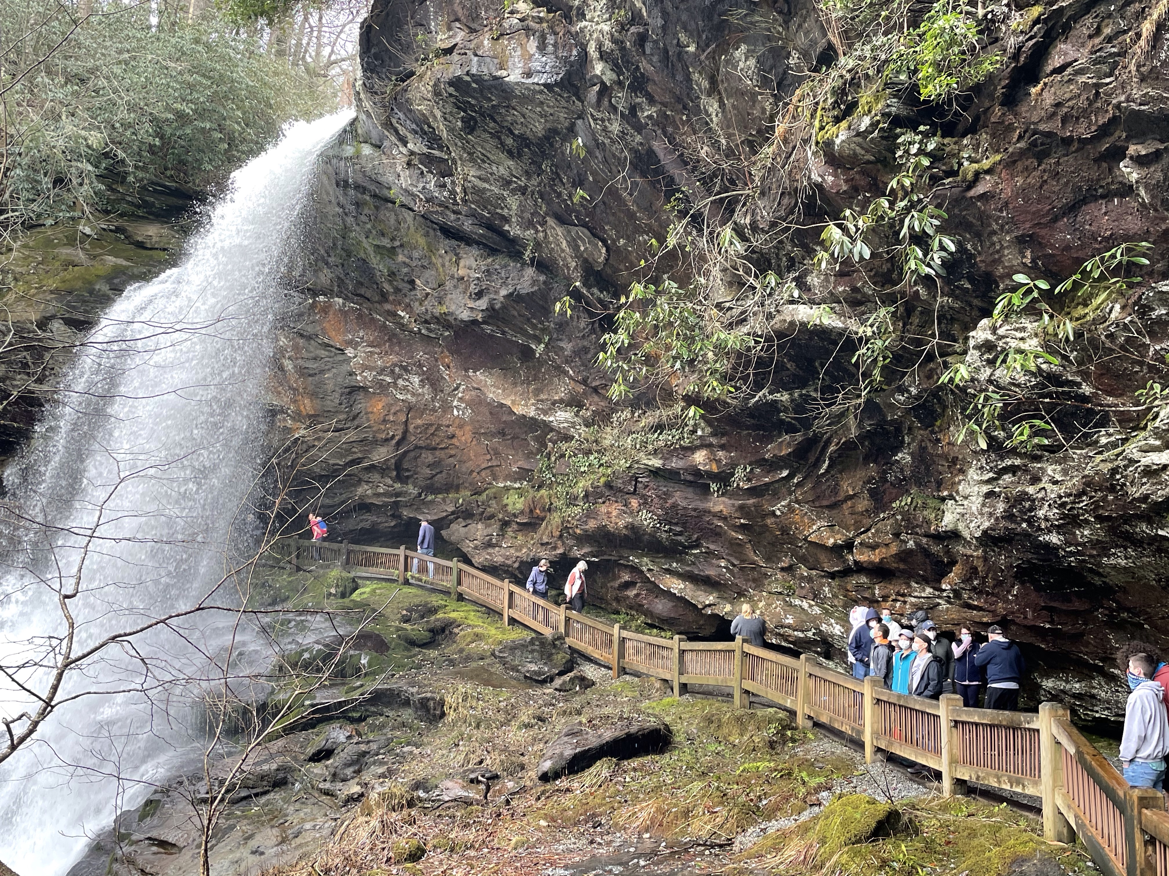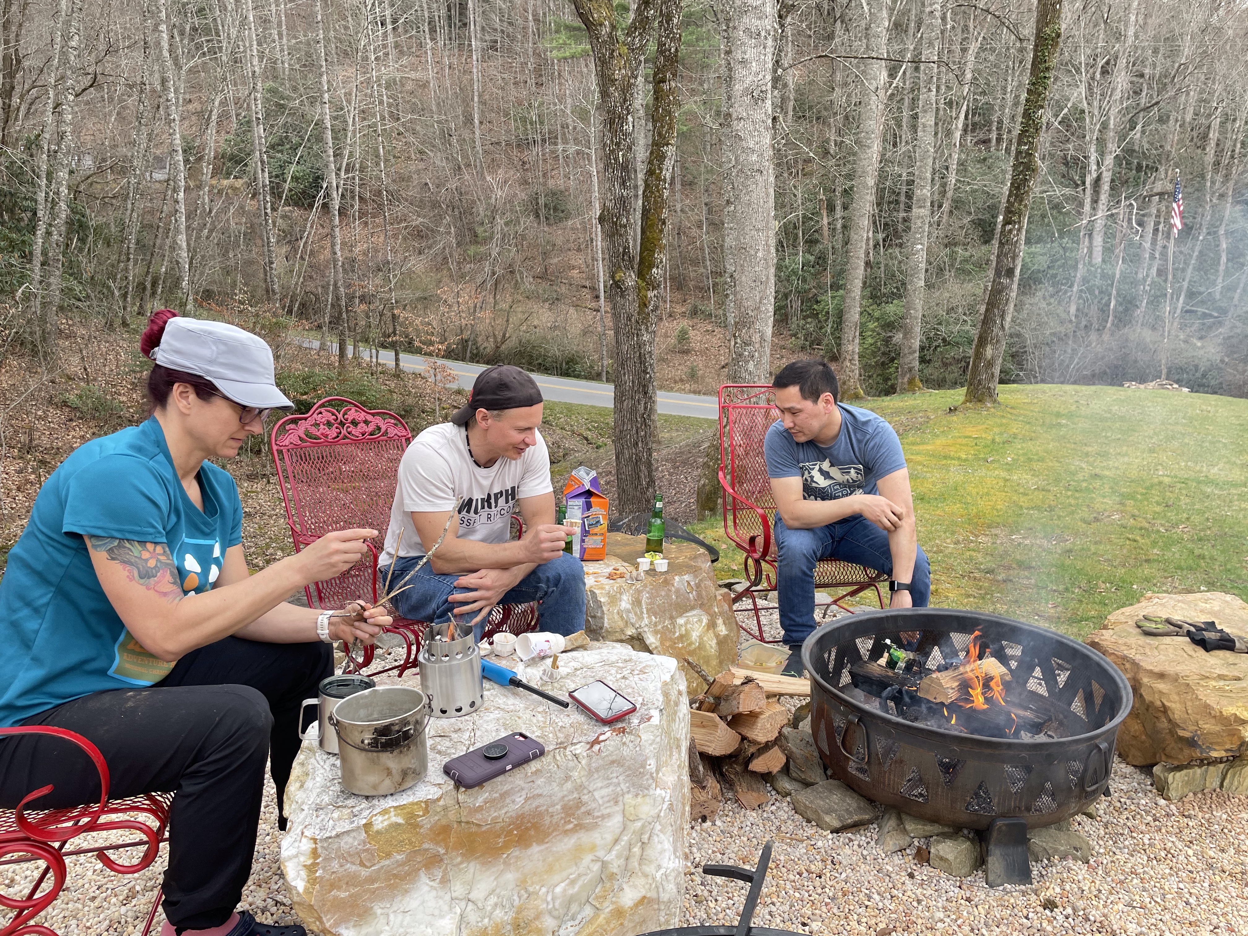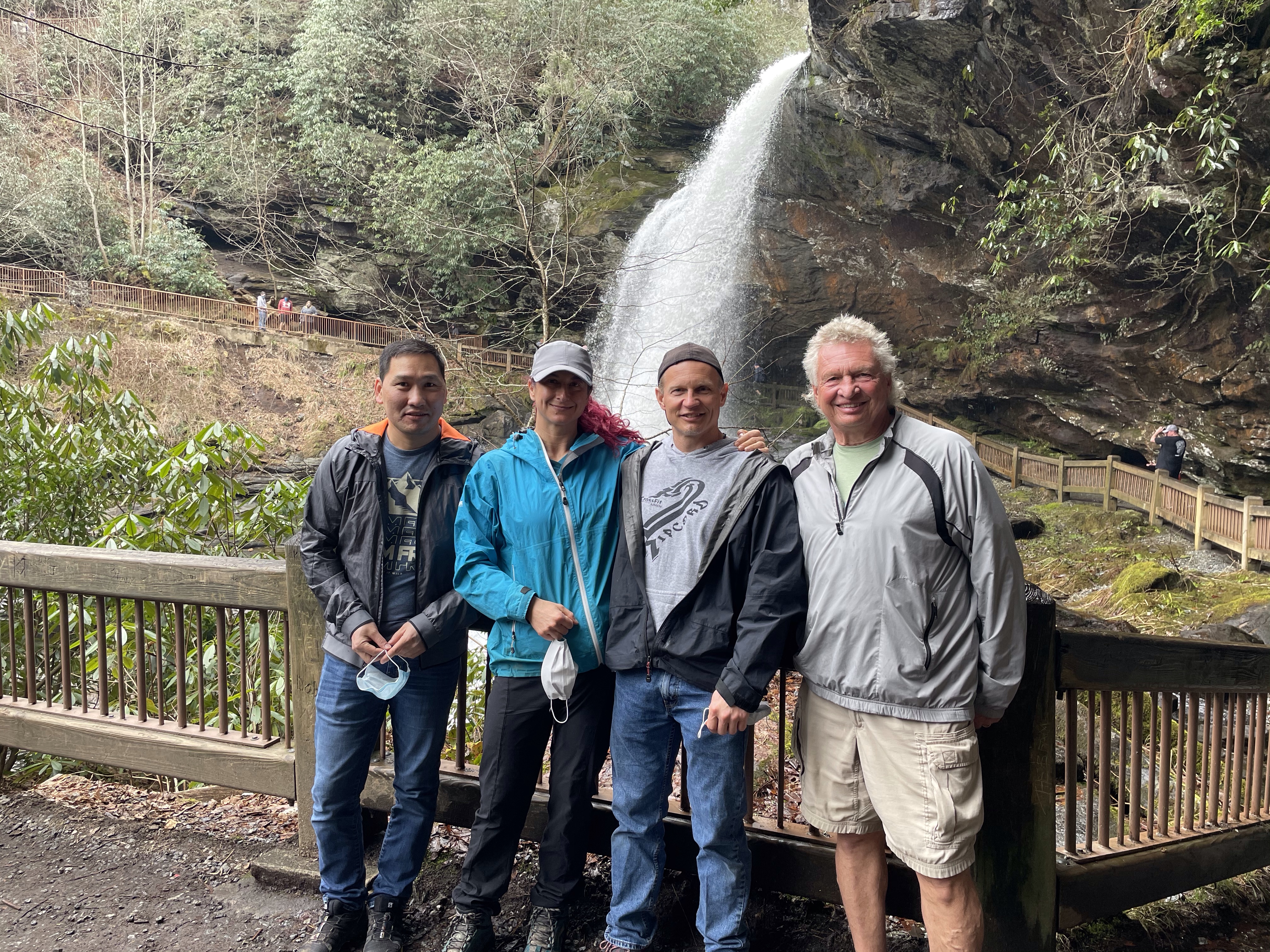 Yay for vaccinations! We hadn’t made any hard or fast plans for travel in 2021 until we had a better idea of the how and when of vaccinations. Steve and I were able to get in under the Federal roll out for teachers and then it was game on for spring break plans! We knew we didn’t want to fly yet and we also didn’t want to spend days driving, so the Smoky Mtns was an ideal spot! Bill and Angie (Steve’s dad and step-mom) have an absolute wonderful setting to base adventures out of. I mean, I’m sitting on the porch right now writing this, listening to the rushing creak, the tinkle of wind chimes, and the sound of boys splitting wood! With everyone down there vaccinated and Tserka with a negative test, we felt reasonably safe to set off on an adventure!