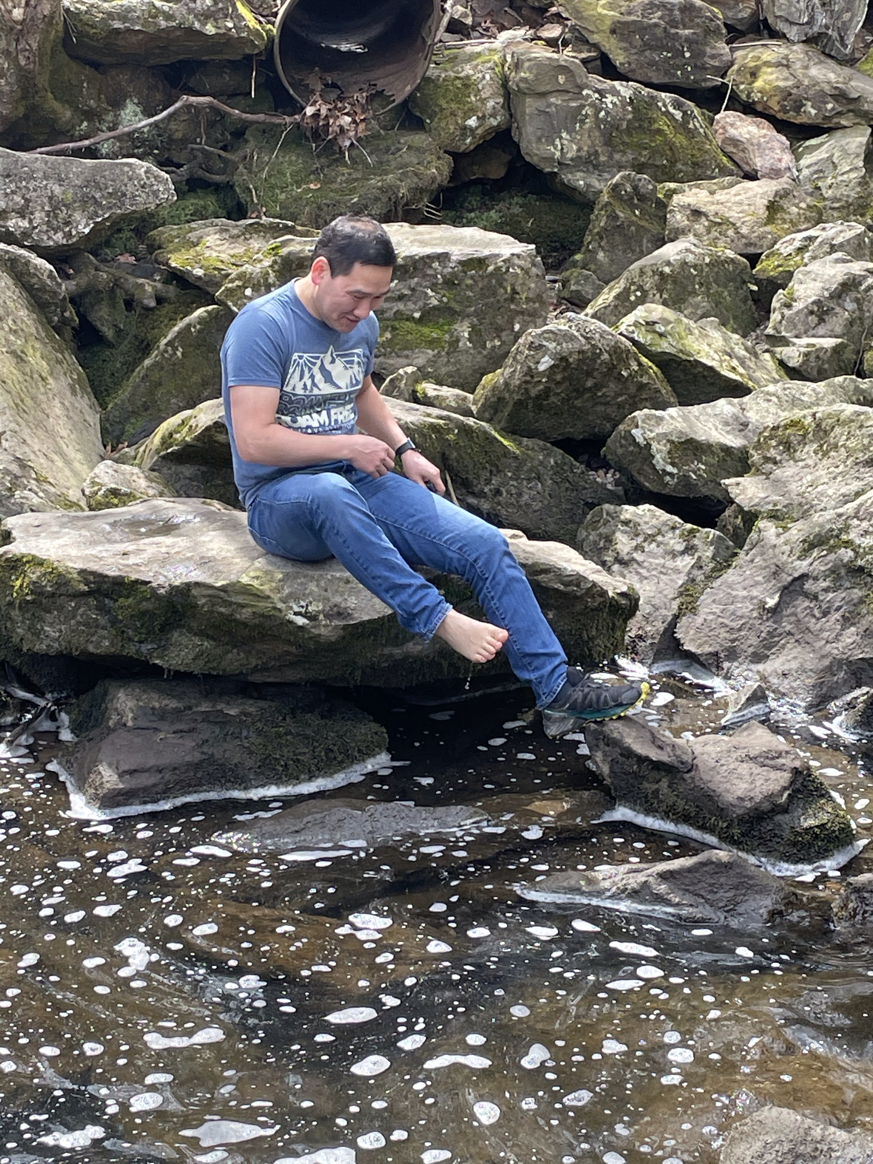 Farther down the same creek we found a nice pull out so we could explore and relax. Of course this quickly became a challenge of can you get across the creek and stay dry. Steve made it, mostly!