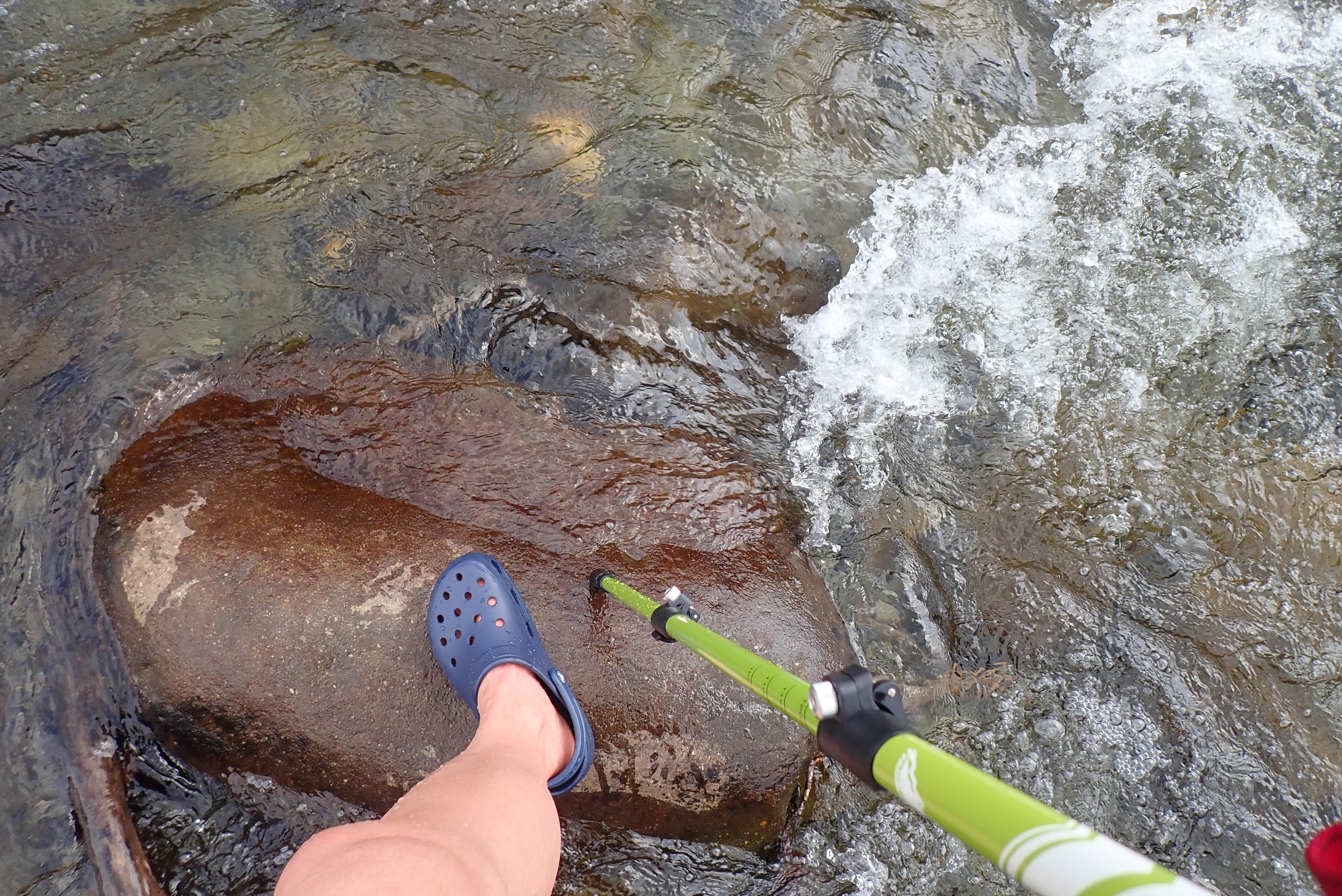 Crocs + hiking poles = lifesavers