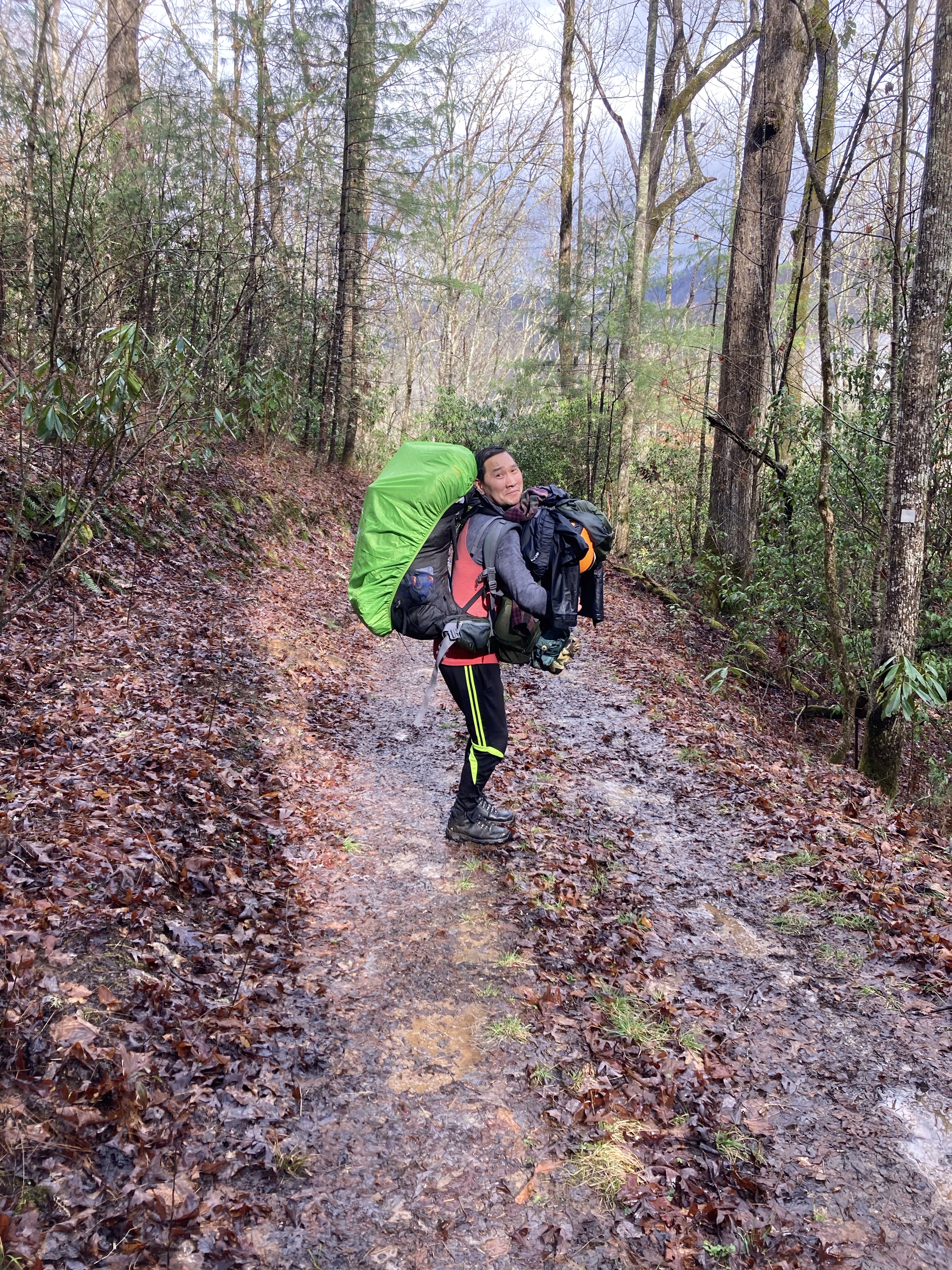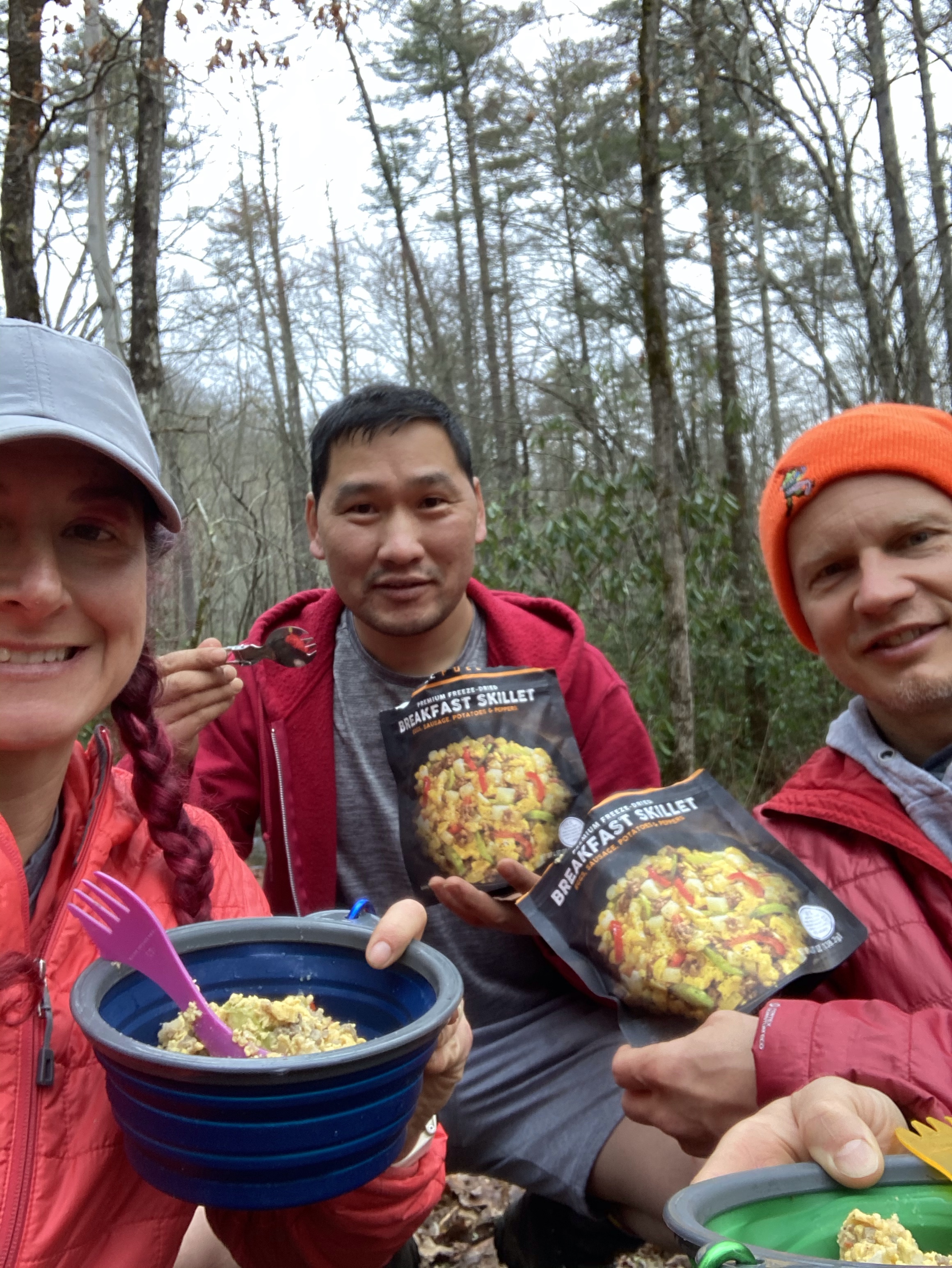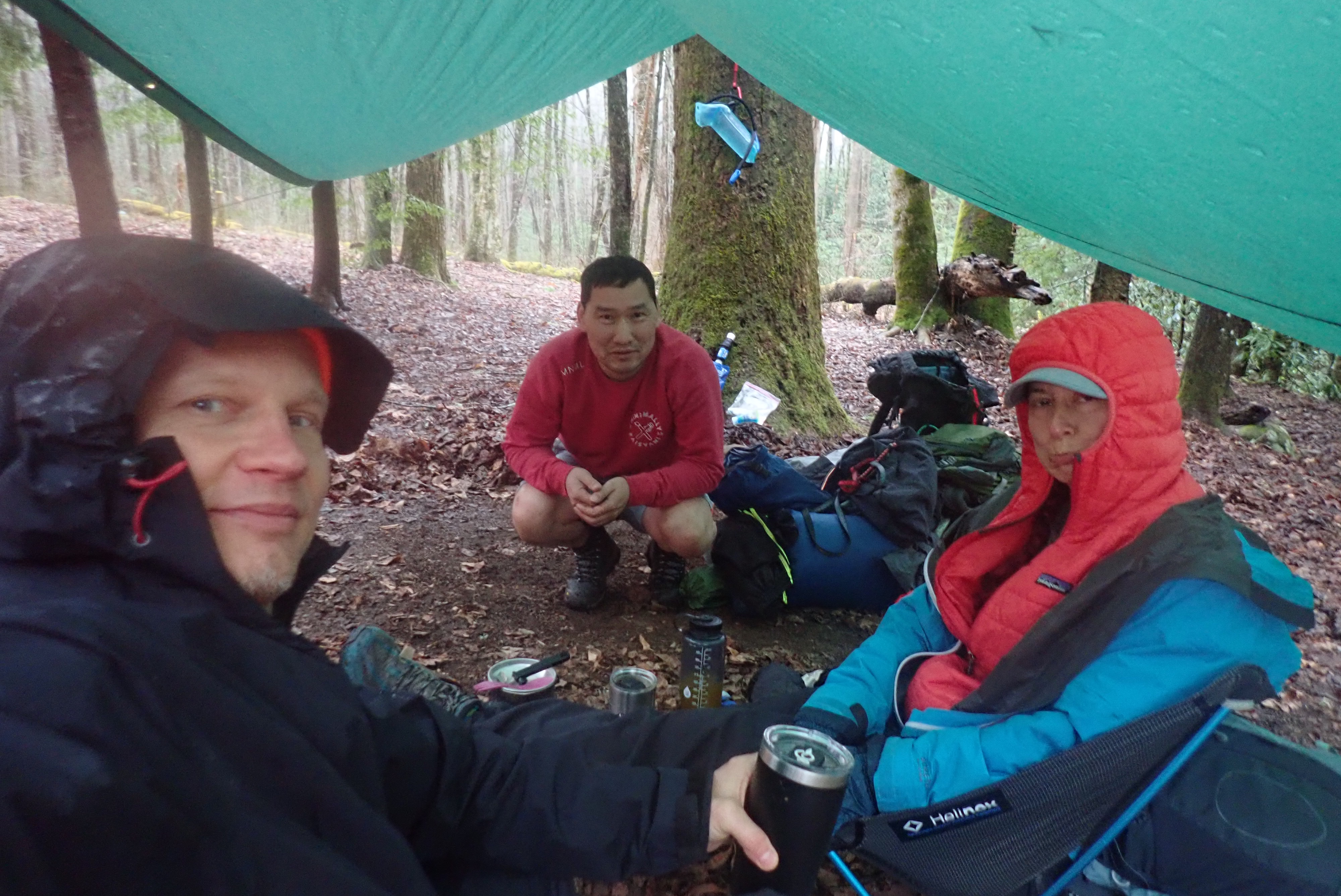 Tuesday March 16 – Day 2 hiking, the Hard Day: I knew going in that day 2 would be rough, it was just the way it had to be. Well, it started rougher than planned when our tent decided it was no longer waterproof and it pretty much rained all night long. We woke up in puddle in the tent and then just got wetter from there! Luckily the impulse tarp purchase I made at REI worked great, so we had some shelter to huddle under for coffee and breakfast. The freeze dried meals from PeakRefuel were amazing! The breakfast skillet tasted legit like something fresh cooked in a kitchen, not something that we just added boiling water to and let sit for 15 mins! Fueled up and packed up, we headed out for the 3 mile uphill climb of our 9 mile hike.