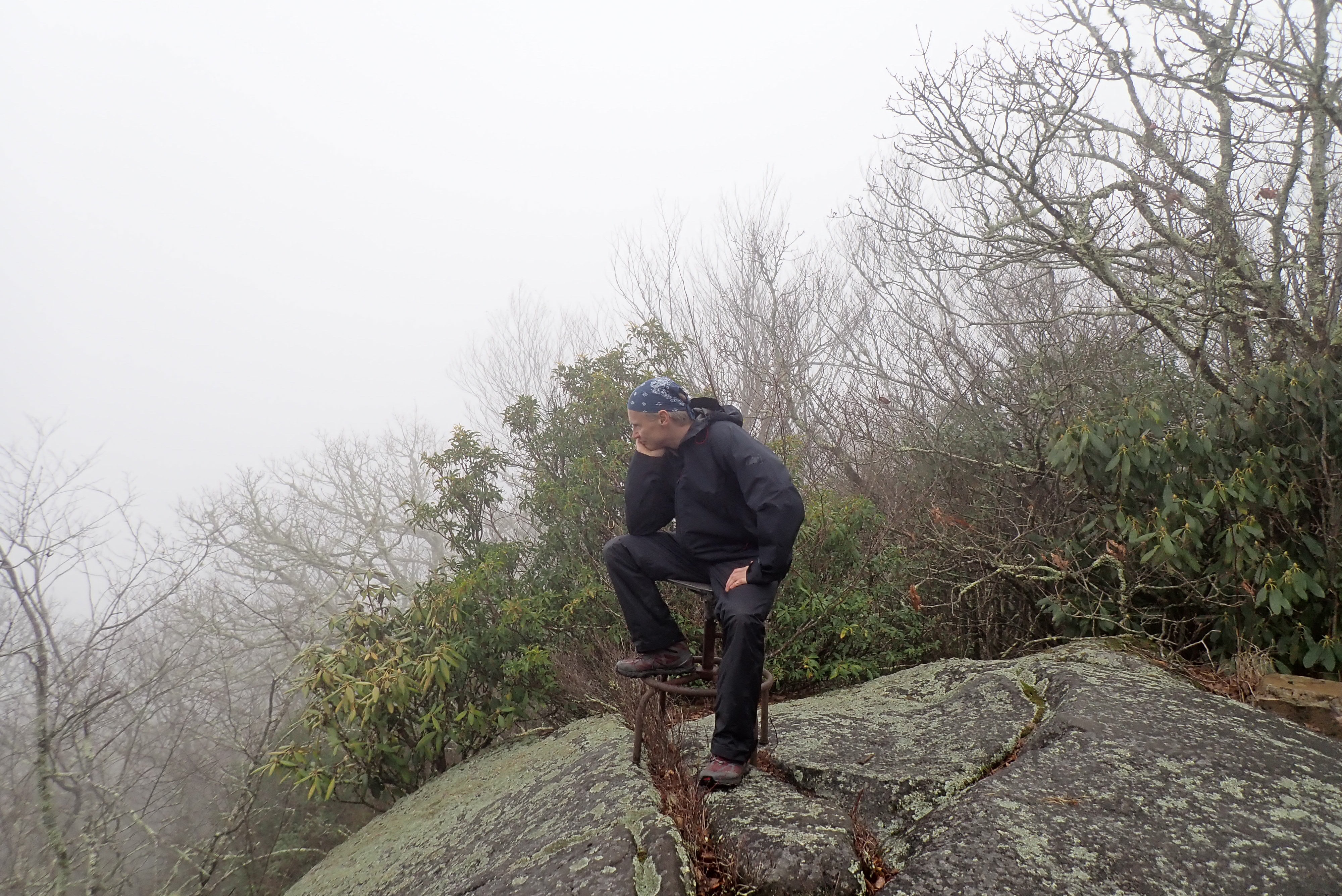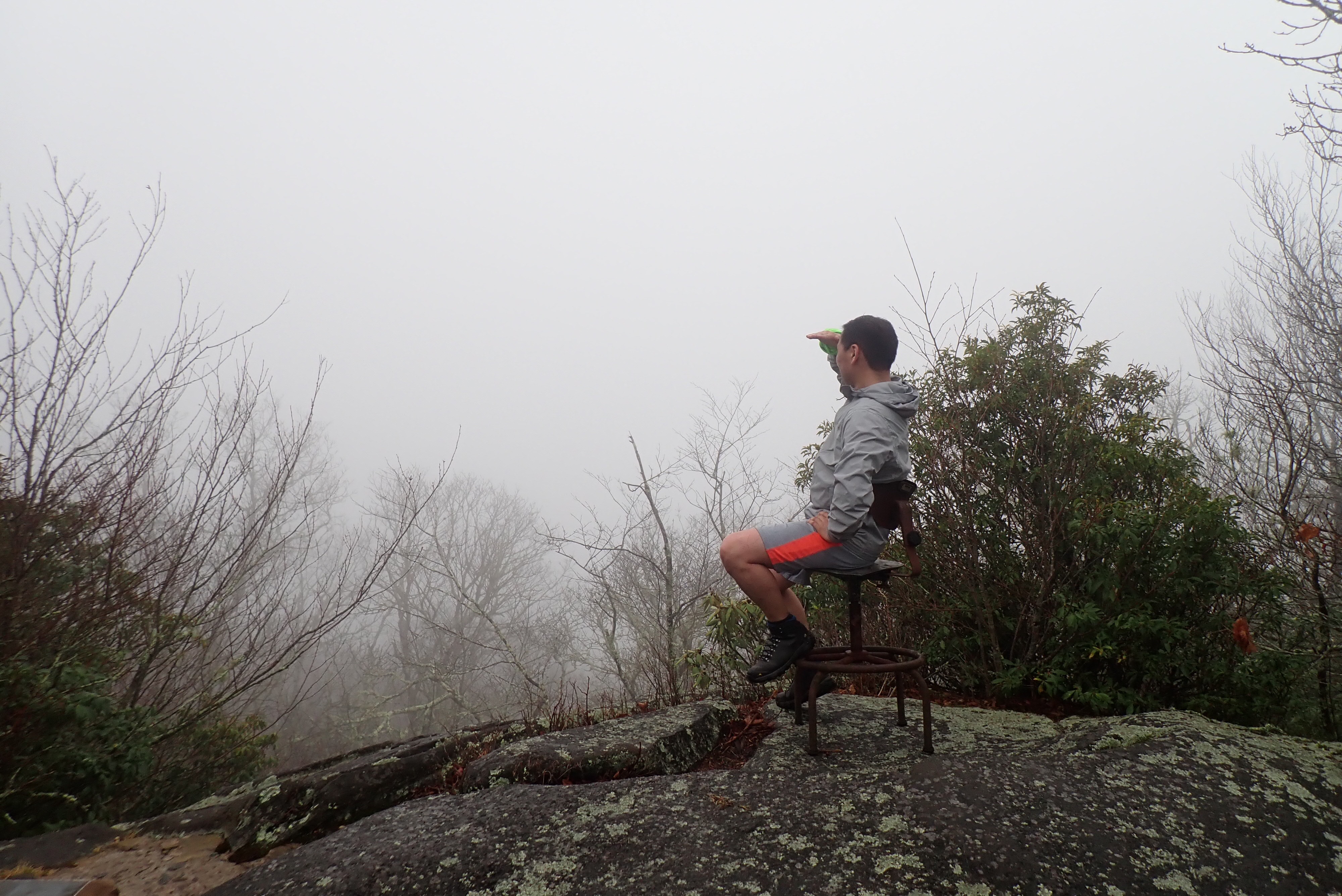 My garmin lost it’s mind on this day and recorded the first section as 6 miles, and the next section as 9 miles… I guess the gps just wasn’t great in the mountains! The uphill just kept going and going and going! At the top we broke for lunch and it immediately began to mist and turn cold. Within 15 mins I went from shorts and a tee, sweating to wearing all my warm clothes, rain gear, and using hand warmers to feel my fingers again. We went a bit down the trail and the guys ran out to visit High Rocks. I sat on a rock and conserved my energy, knowing that I had 6+ miles to go and I was feeling it.