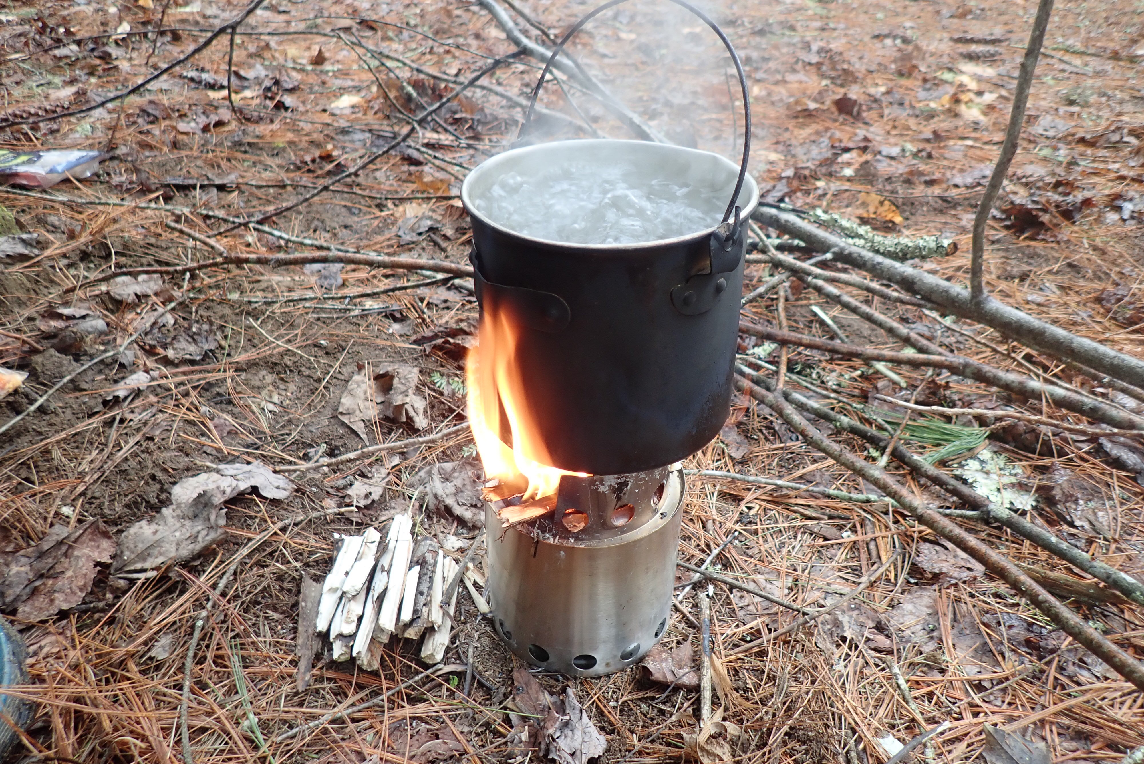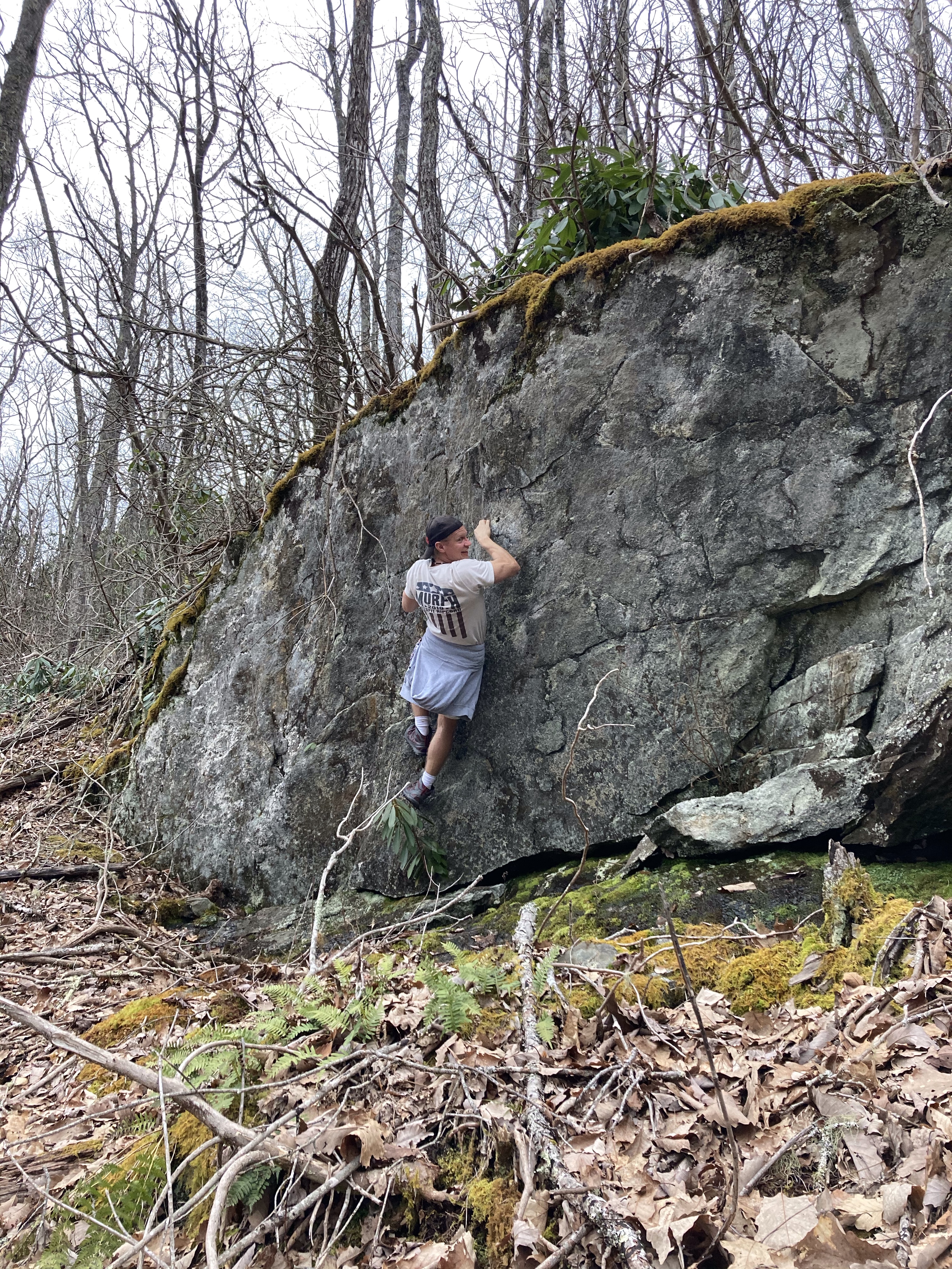 Back at the cabin for some lunch and then a hike to the top of property. Their property goes all the way up the mountain to the top, the last bit with no trails, just a scrabble. On the way up Steve spotted what he thought was a cave so we decided to work our way over instead of just heading back down. Turned out to not be a cave at all, just a dark outcrop of rock, but he did try out some holds. Back home for some creek beers and a campfire. I wanted to make some fire starters to use with my new solo camp stove. This quickly got taken over by the guys and soon I had more than I could use on one trip!