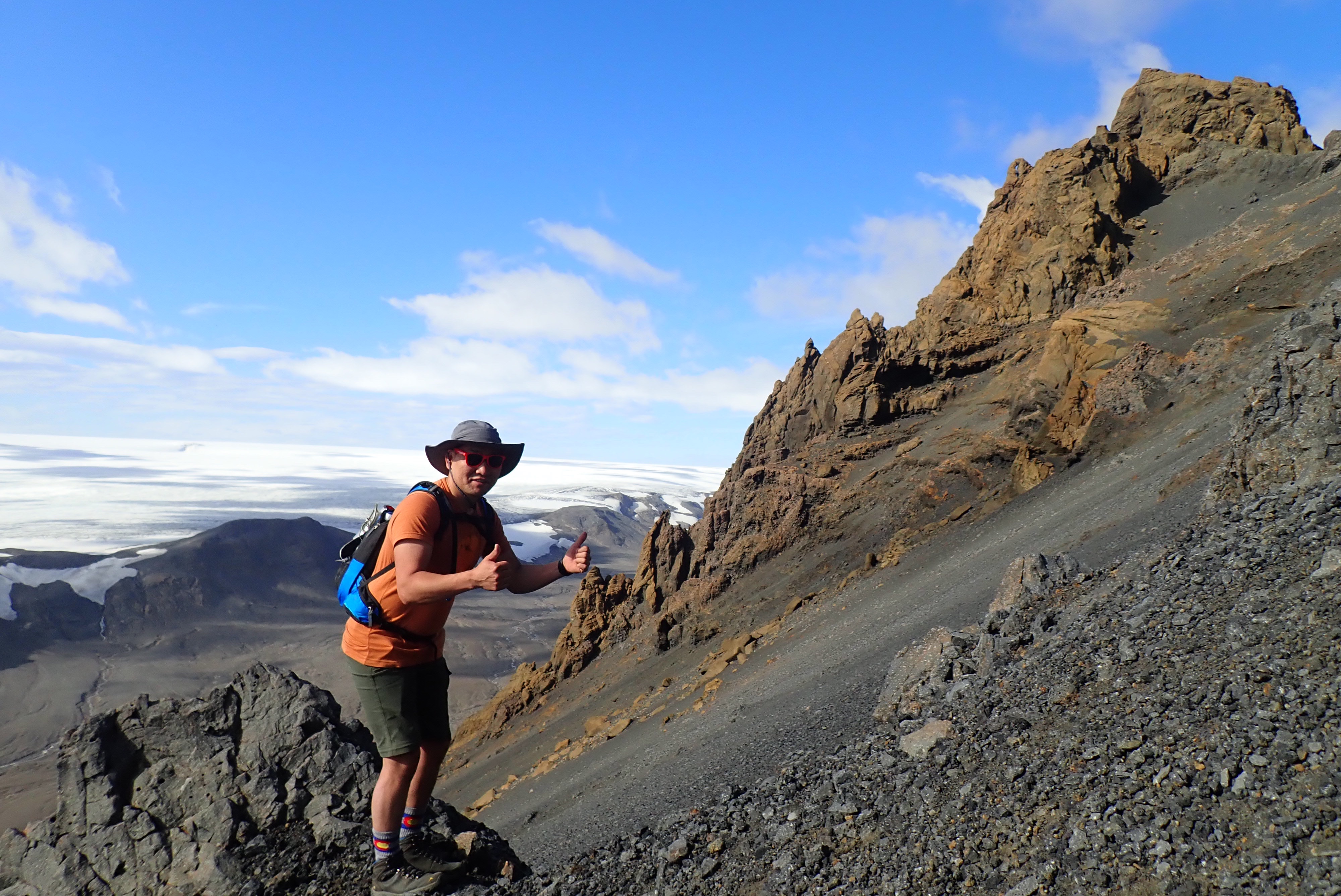 Steve went ahead and found a nice sheltered spot on a ledge so we could enjoy a coffee before heading to the top. Let me tell you, this was some thicc coffee made from the glacier run off! Steve commented that much more of that and we be farting dust! After posing for some Instagram worthy pics in hopes of garnering free coffee, we continued our trek to the top.