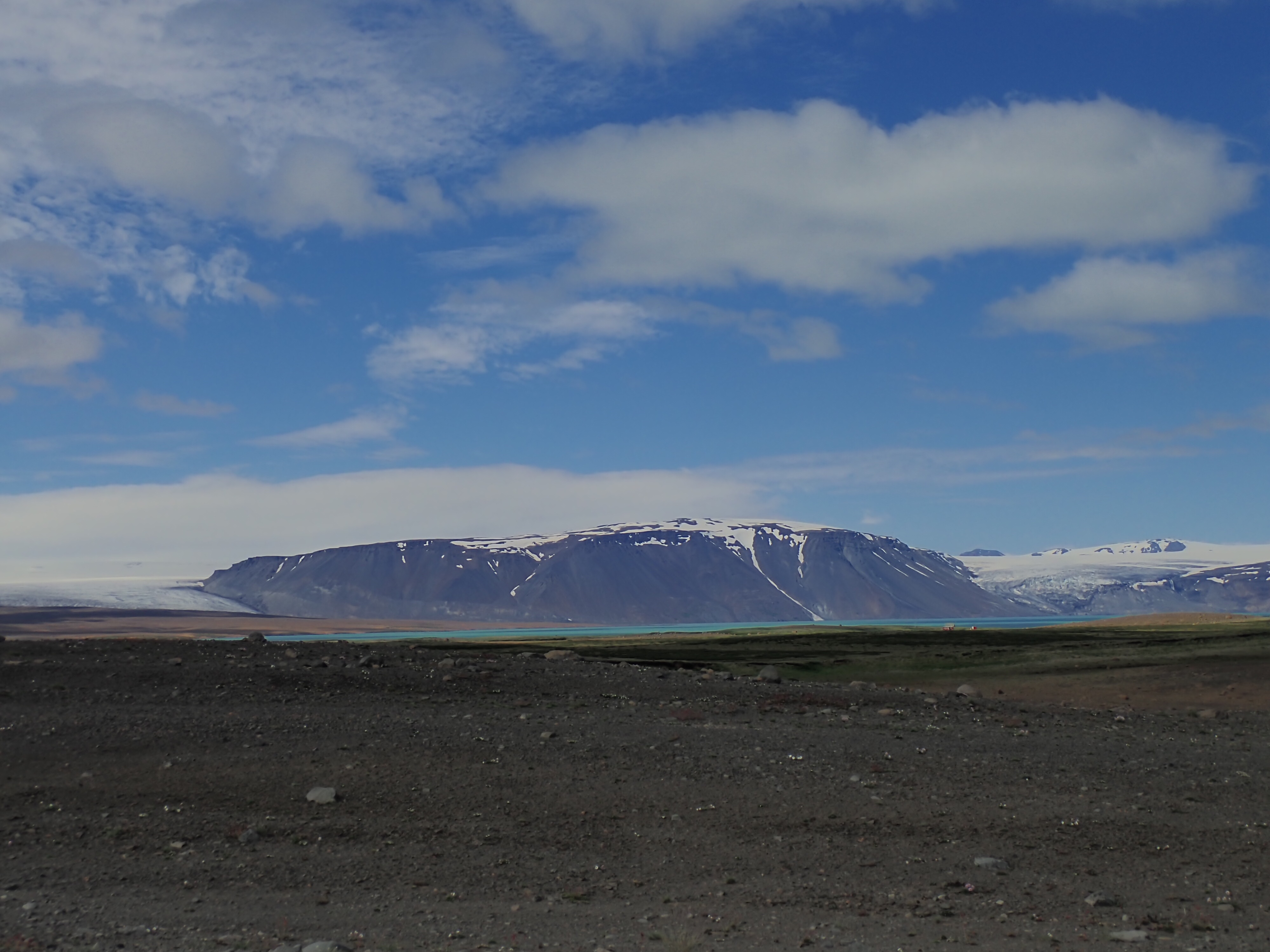 View of the Langjökull glacier and lake