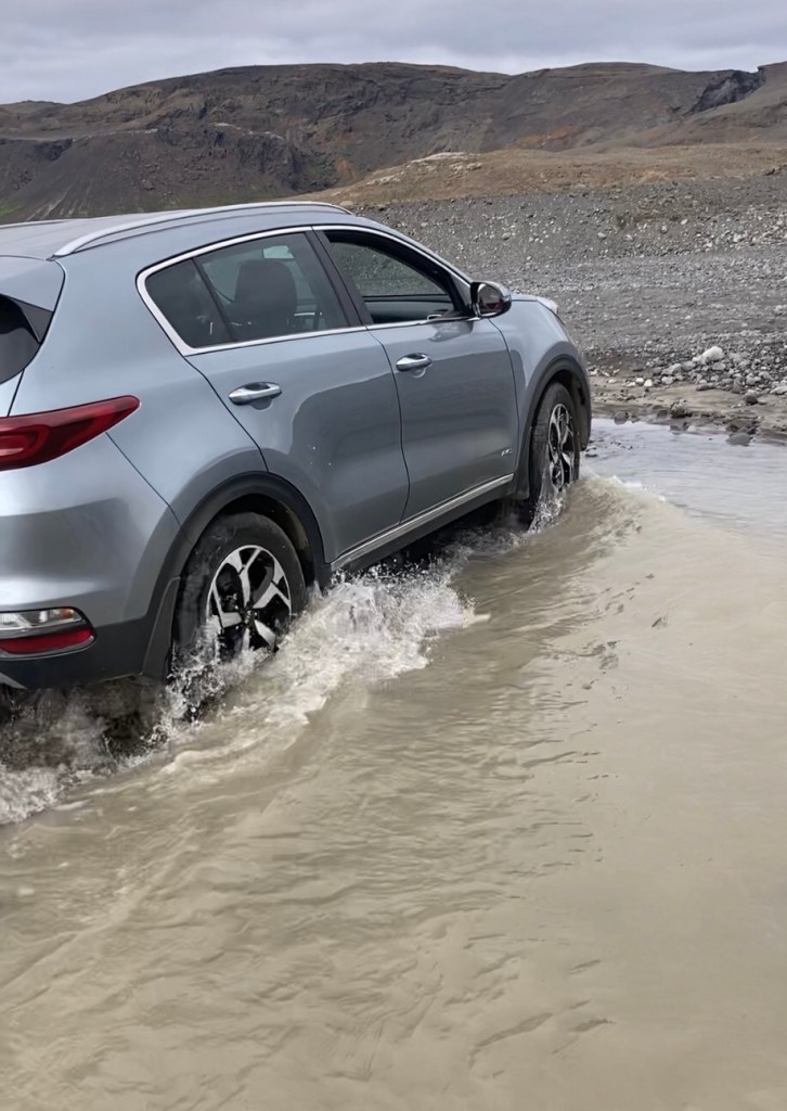 Sunday July 11th: We woke up to sunshine with some clouds moving in. We broke camp and had breakfast down by the stream. We had thought about hiking the mile or so up to see the waterfall but during the night the water level dropped quite a bit so we decided to test the limits of the Kia! Steve donned his neoprene booties and cleared the largest of the rocks. The water wasn’t swift or deep but remember, we are rocking a crappy car! Tserka did another great job navigating the obstacles and we started to feel not so bad about our ride! *see end of story for day 3 for an update….