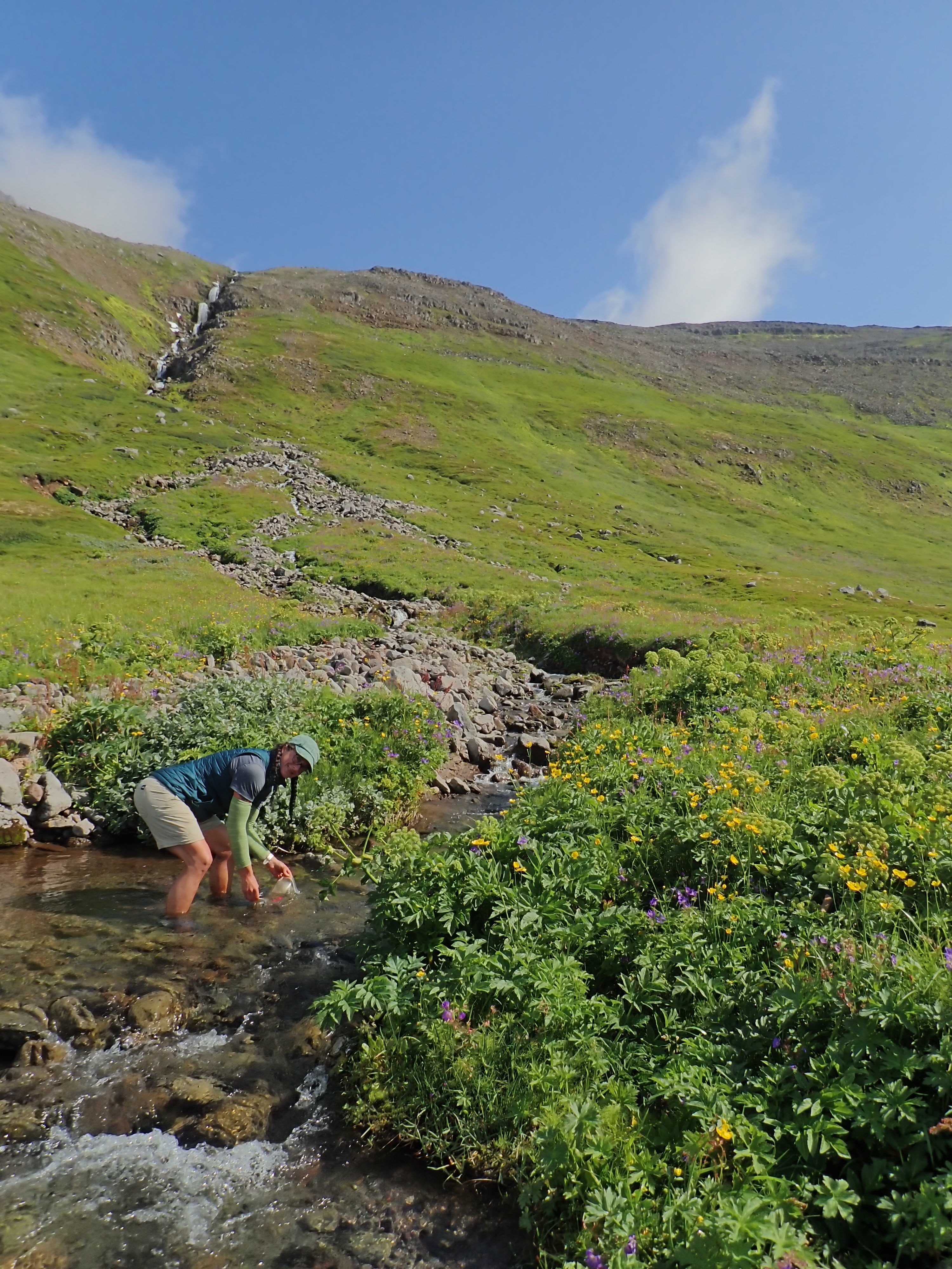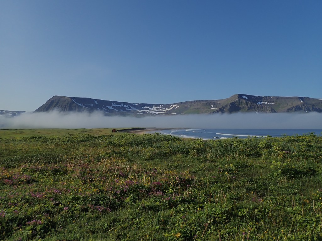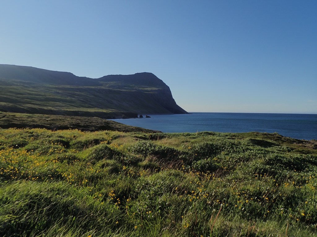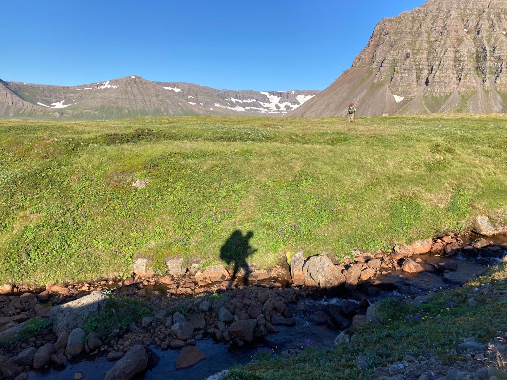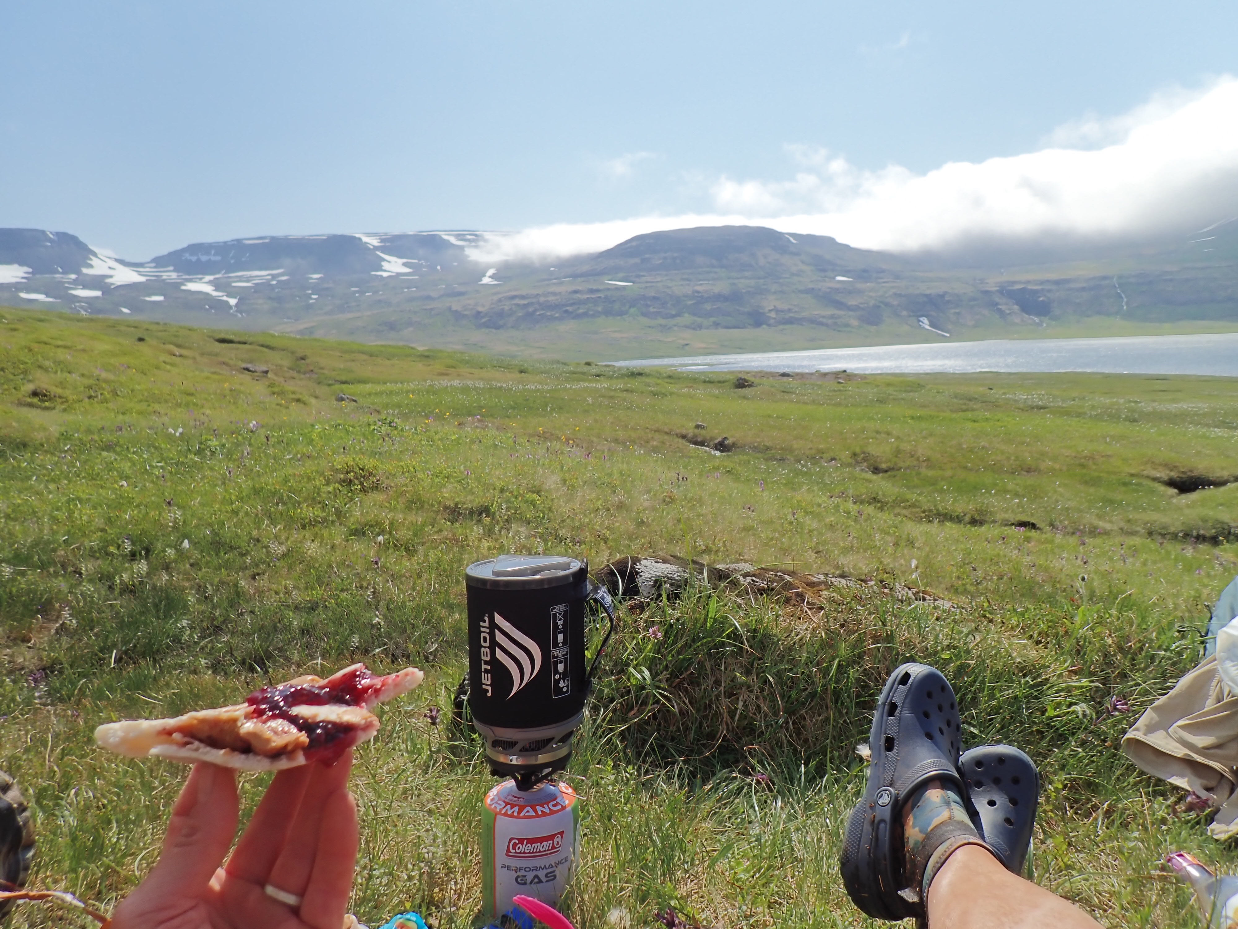 The Hlöduvik campsite is my favorite one so far, even with the crazy wind gusts. The creek is close for drinking water, the view of the ocean is amazing, and there aren’t any summer houses right nearby. We had our typical 10 pm dinner and cocoa and then I tried to sleep. This though was made problematic for two reasons. One, this was what the sky looked like at 11:15 pm, and two, as soon as I laid horizontally, my legs and feet started sending throbbing pains up and down. A restless night but I did manage a few hours of sleep.