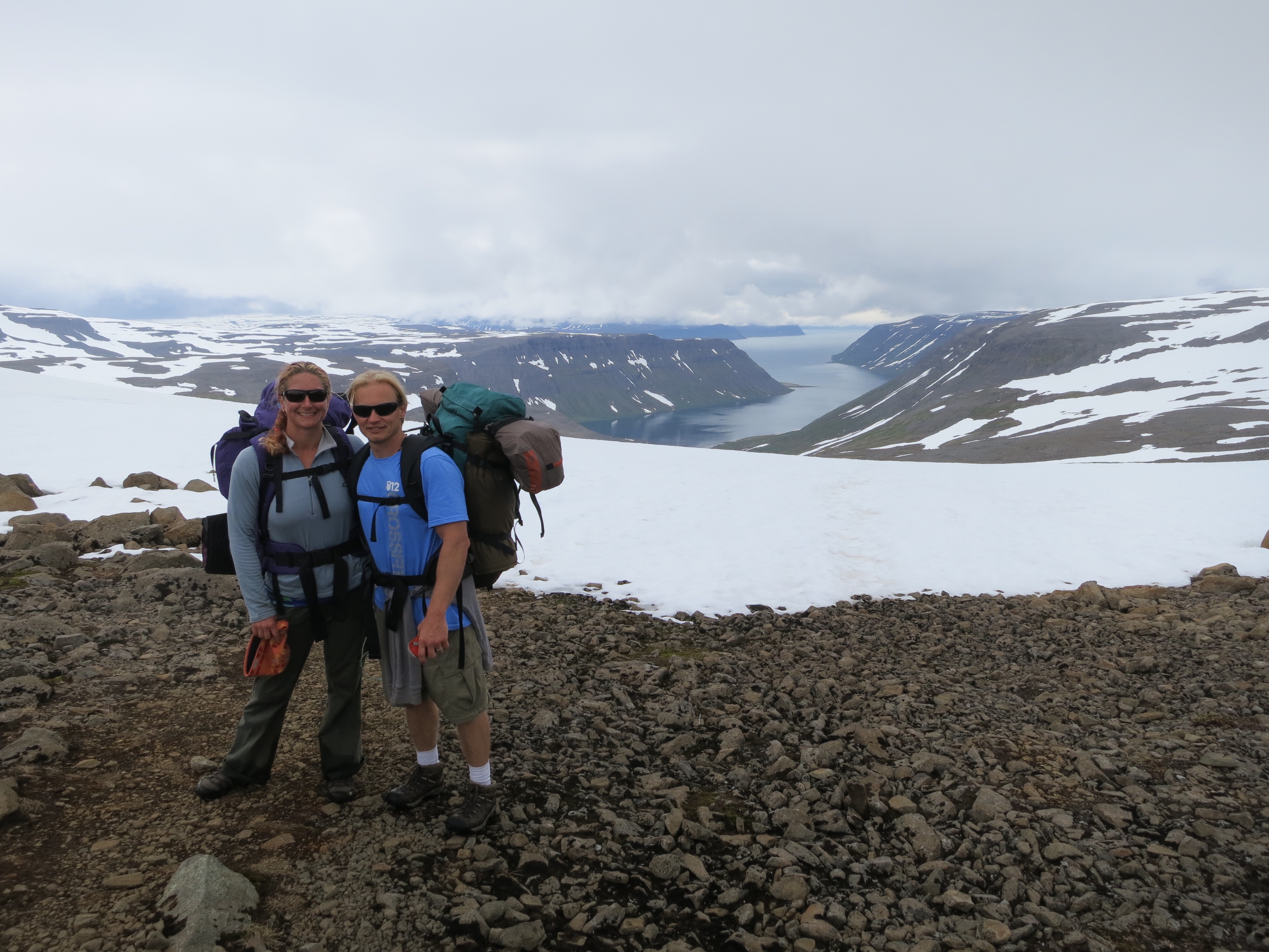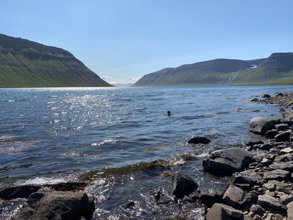 The ferry showed up a few hours later and we made our way back to Isafjordur, the big town up here. Unfortunately, our car was in Bolungarvik, the very small town to the north. We found a taxi parked outside of another building at the docks and went inside. The lady at Sjoferdir Sea Travels was very helpful in pointing us to the bus stop, unable to taxi us up north since she was already booked at that time for a trip south. She did say that we were not the first hikers who had been stranded by our ferry… We hiked down to the gas station for drinks and snacks and some directions for the bus schedule. Everyone was very nice but since they didn’t use the bus service, they couldn’t really help us. I’d be the same way if someone in Columbus asked me about the busses. I finally thought to call the Westfjords tourist center and this guy knew everything! We’d found the correct bus stop but the posted sign didn’t match up to what we’d been told. He said don’t worry, the sign was dead wrong and the schedule had changed at least four times since the sign was put up. We had an hour to wait, then a $45 fare to get us to the town with our car. Luckily this van/bus was able to accept credit cards since my wallet was in the car! Back at the car, we decided that showers and laundry were needed. The public swimming pool here is amazing and has a camping area attached to it. We were able to pay to use the laundry and showers, plus a nice long soak in the hot tubs. In retrospect, we should have skipped the laundry and just done showers. Doing laundry always eats about 2 1/2 – 3 hours. We had to make the eight hour drive down to our bed and breakfast still. Between the the three of us, we had the trip, finally getting in at around 3 am.