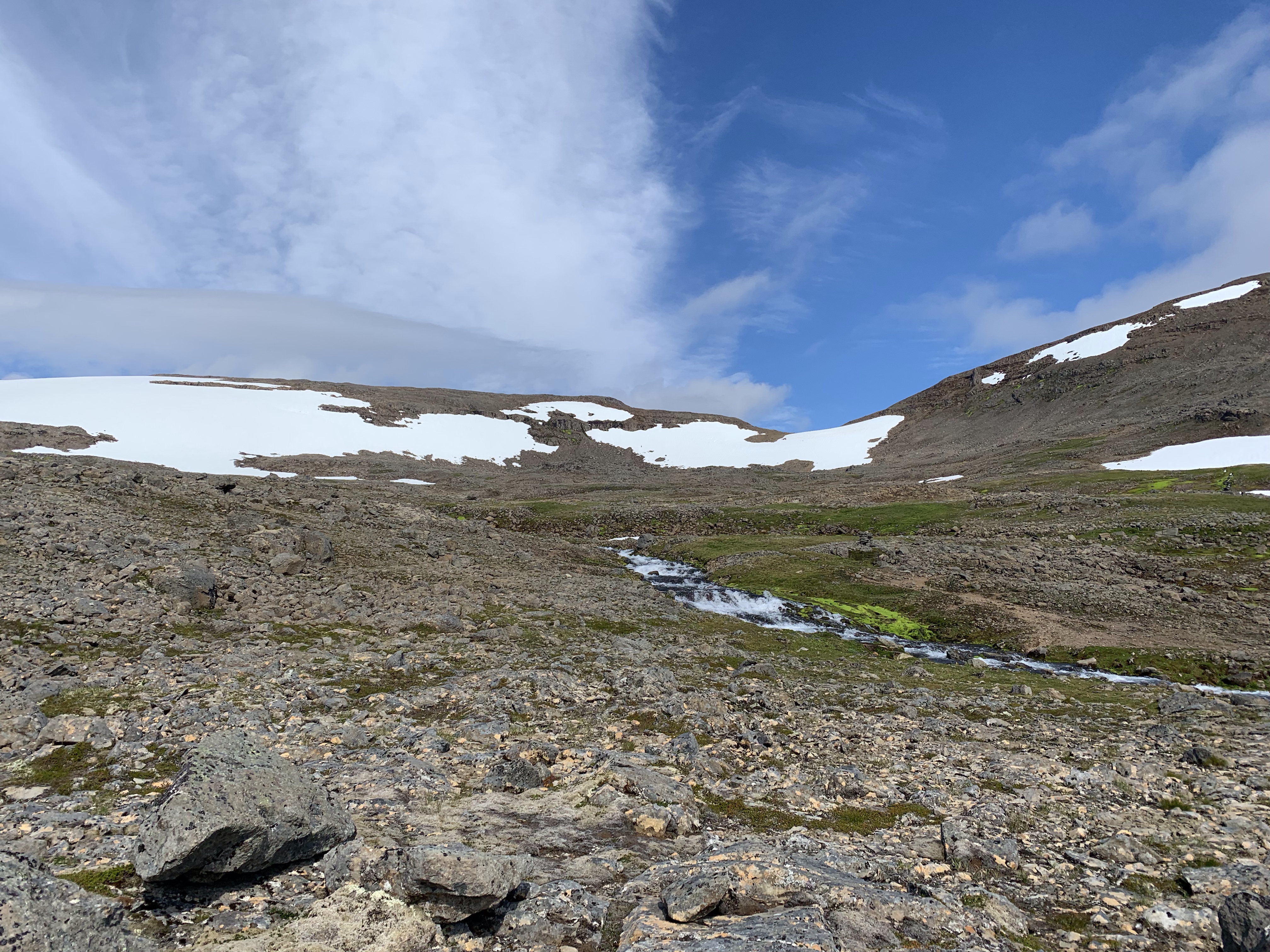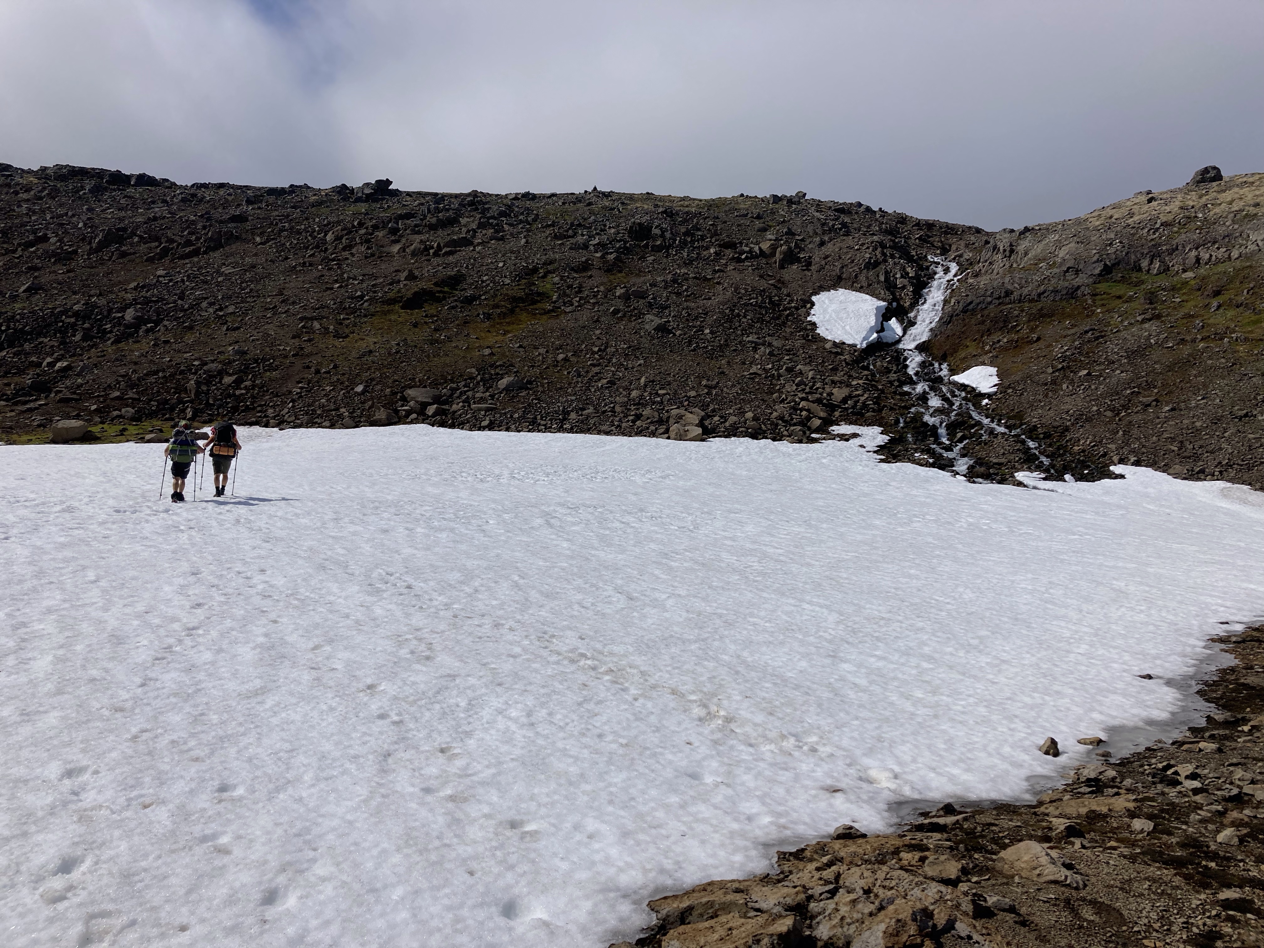 The way out has a lot of water, both running and in snow form, to cross. If this is the only part of the area that people hike, they’d be under the impression that the entire peninsula has flowing water within easy reach. That wasn’t always the case for the other parts! But it was nice to just refill my bottle as needed on the hike out today! We made excellent time and decided to have one last coffee stop before we made it all the way down.
