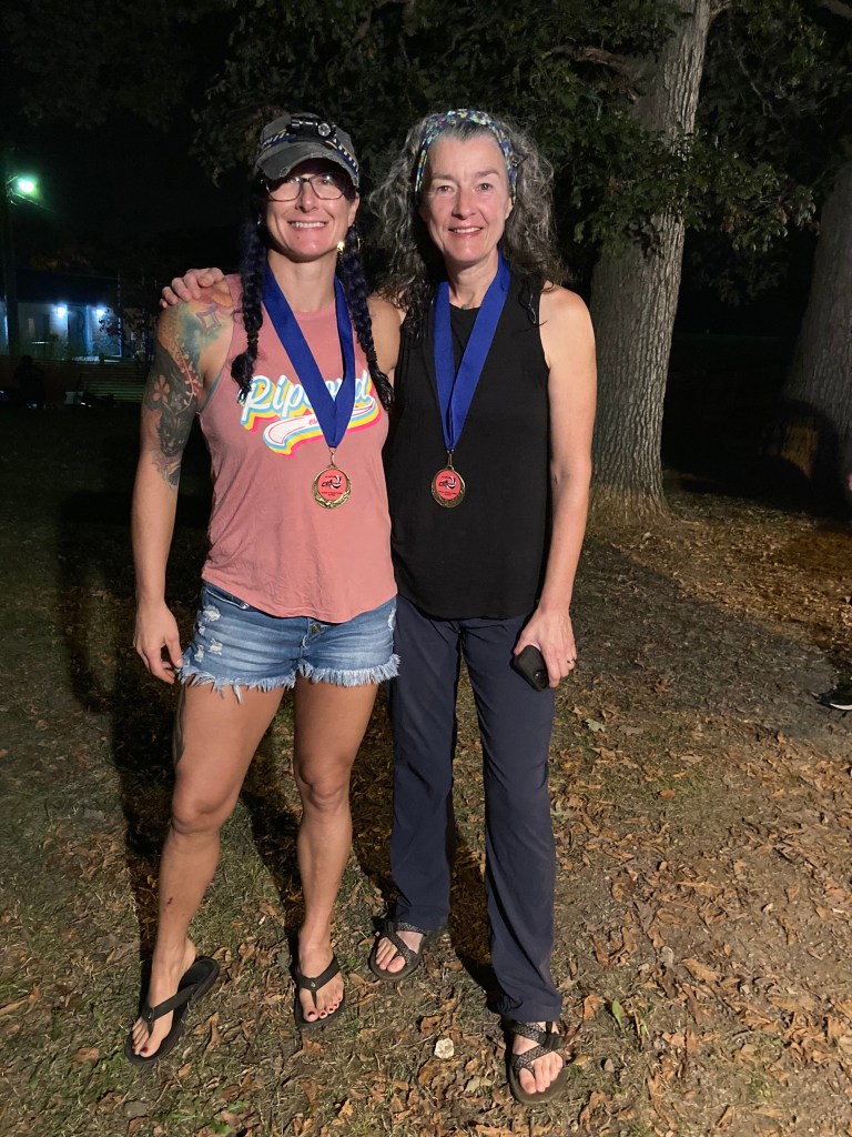 This stage gave us two options. Option one was to memorize the map and go out together. Option 2 was to send one person out to punch and the other gave directions via a walkie talkie while getting to look at the map. We chose option one! I wasn’t sure how many notes we could make so Karen and I just did our best. I learned later that we could have drawn out whatever we wanted. The CP’s were grouped in 3’s, one group to the south and one to the north. Getting 3 punches = 1 CP. We did the south group first since it was closest. No major issues except we missed the first one we went for but got it on the return. The next group to the north was more spread out and we didn’t remember which structure we needed to look behind. Not a big goof but did take a few mins away. During this section a runner came through who was being directed via walkie talkie! She was doing great! Karen and I made it back to the TA with about 35 mins to go and took a look at stage 7. This could be done via paddle or foot but we decided that the closest point via foot would require a level of running we didn’t want to commit to this late in the race! Goals for next year, run more in a 12 hour race!