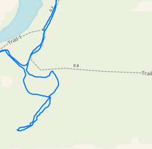 The trek was 4 points fairly close off trails. The first one was a quick out and back before heading into the loop for the other 3. Karen and I opted to not run this section since we still had a big bike to get back. We did say this is our goal for the next CIA, to run sections of it! The loop seemed straight forward but once again I fell victim to the trail map and ignoring the topo. The park had created a new trail section and had a sign calling it Trail 5, pointing that direction. The original trial map we were using did not show this segment so we assumed we had the correct trail. We did find the hill, but after searching for the CP, we decided to head back to the trail. This was when we ran into team DINO who had made the same mistake as us. Knowing the CP wasn’t behind us, we went out the other side of the trail, which was wrong based on the trail we THOUGHT we were on. Yep, the CP was at the top. One thing I love about Brian’s races is the CP’s are always were they are marked on the map so I knew we’d goofed somewhere. After the race analysis showed that there is a new trail in use and if I’d followed the topography more, I should have picked up on it! From this goof on CP15, we went out for the next one and instead of doing and out and back we continued on. The thought originally was to maybe cross country over but looking at the “field” that was a big NOPE. It actually worked out perfect for us since approaching from the east allowed us to step out to the lake shore and get a view of what was happening. From there it was just a matter of choosing an entry point to access the CP on the tree. Leaving this one we ran into Steve’s team coming back since they’d overshot it.