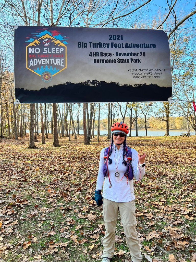 Leg 3: Bike 9.44 miles ~1 hr – I headed out around 12:30 pm for the bike leg, figuring I had time to clear the points on this section since it wasn’t on technical trails. These points had to be done in order so it was follow the leader in some sections. The first 4 points were down an old road that threw me for a loop because it said foot traffic only. It was obvious from the map that we had to take this road but as soon as I turned on it, I saw two hikers. I paused, rechecked the map and then just apologized as I passed them. They caught back up to me at the first CP and I explained that a race was in progress and that there were several bikers on the trail. From there, it was out and back to CP 2, and then 3 to 4. At CP4, I saw the next climb was pretty steep, so I opted to backtrack and take the road over to the trail that lead to CP5. The difference was only about 1/10 of a mile when I went and looked at the maps later, but the climb was much easier on the road! On the loop to CP 5, I rode behind a couple of family teams to the checkpoint. It was great seeing so many kids out there doing the race. I’m not ashamed to say I got beat by more than one family team! The last three checkpoints in this section were all straight forward and then it was back to the finish.