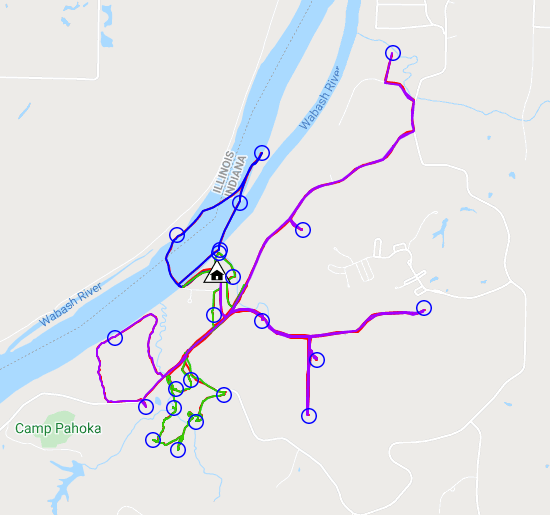 Leg 1: Canoe 1.8 miles, ~45 mins – I decided to do the canoe first with the thought that the wind could pick up more in the afternoon. The Wabash river was flowing pretty swift but the kayak I had did a decent job of staying on course. I went in a rough clockwise direction, grabbing the four points in the loop, only one of them requiring me to exit the kayak to punch.