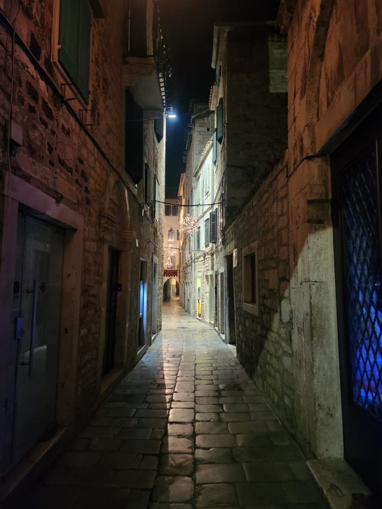 From Plitvica to Split was a 3 hr drive. At this point in the day I had consumed 3 coffees, one Red Bull, and ended the caffeine train with something called Hell Energy drink in order to drive! Fueled by chemicals and delicious Nutella biscuits, paid to me one per every 25 km, we made our way south. We rolled into RED Adventures and met Dejan, the lovely owner who made the next leg of our trip possible. The next couple of hours were spent fitting kayaks, pfds, packing gear, and then taking a taxi to our hotel. Josh had found a very cool place for us in the Old Town center. Unfortunately, we were so exhausted that we didn’t do much exploring. A quick tour of the food options and we landed at a fairly Americanized place but the pizza looked good and my beef tacos followed by the apple pie dessert tacos were amazing!