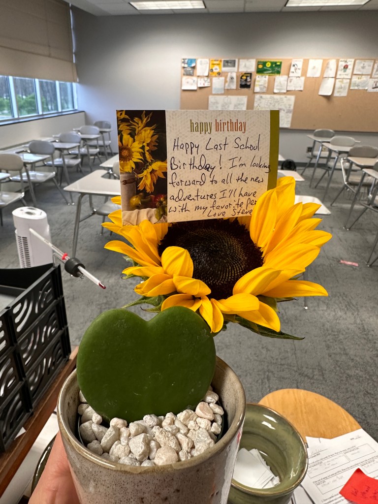 Another blink and suddenly I’m back in the classroom, trying to put on my best face, holding all my shit together, and slowing falling apart. Here’s the thing, through all of this I sheltered my students from what I was dealing with. It is the job of the adult in the room to not burden the kids, they have their own stuff to deal with. My students of several years could see that things were not great, and offered sympathy and humor and I am grateful for that! As we started the 2nd semester it was very apparent to us both that education was no longer a viable career for us. Steve was having his best year ever with the AP Comp Sci course but even that wasn’t enough to make up for the other stuff. I would never have imagined that the 19th year of a profession would be harder than the very first year. As Spring Break loomed on the horizon, we decided we just couldn’t do it anymore.