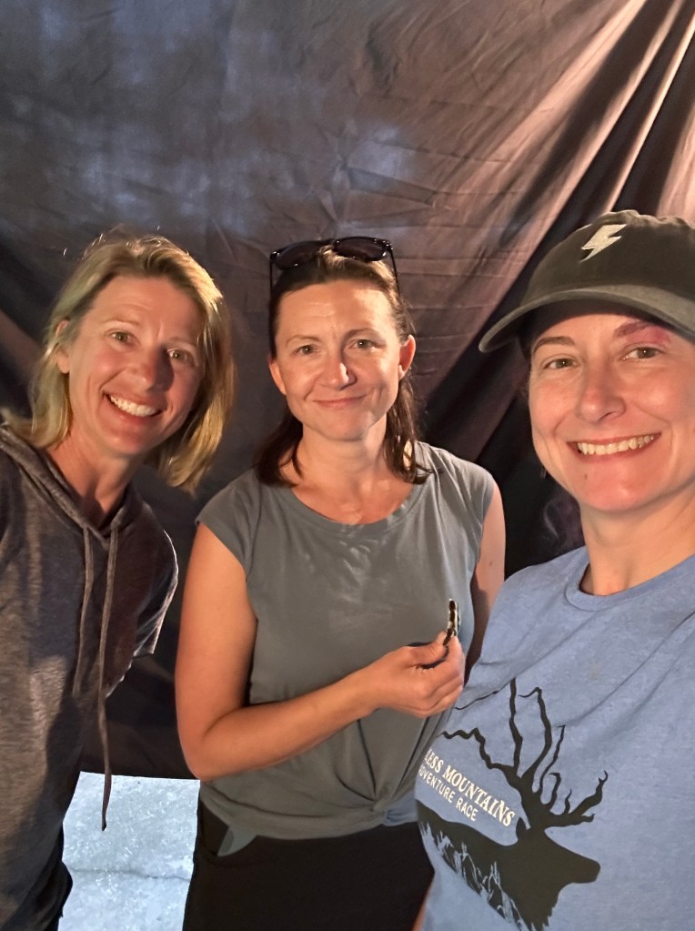 USARA Nationals Vermont 30 hrs (142.6 miles) – This was my third year racing at Nationals with the Chickpoints and it was the hardest one yet for me! 2019 in NC was the longest race I had done at that point, with the most saddle time and one huge ass hill at the end, 2021 in Wisconsin was a brutal paddle but overall fun, and 2023 in Vermont was all about the climb. I wasn’t as conditioned as I should have been, but I’m not sure if I combined all the elevation in Indiana it would have made much of a difference for Smuggler’s Notch! I think everything was going fine for the first few legs, even the 22 mile canoe wasn’t awful, thanks to the portage wheels Kristy brought! It was on the Stage 4 (2nd bike leg) that things started to go wrong. “Leaving the My Topo TA (TA 3), the teams mounted their bikes and started climbing. The race features almost 19,000 feet in elevation gain. Having lost a few feet moving down the river, the rest of the race will feel very much uphill, with a few very fast downhills for good measure.” – straight from the USARA website, and they were not joking! It was 16 1/2 hrs into the race when we started this stage. Most of the bike is missing from my memory, I have blips of really muddy trails, climbing near vertical steps carrying our bikes, and a never ending uphill climb on the road. This was when we overshot the entrance to TA 4. I noticed, but did not remark on, the flag in the parking area/forest road. I don’t remember it saying USARA so I didn’t think much about it until a mile later, climbing the 7.5% grade, Kristy was like crap, we should see the TA by now… Yep, we had biked right past it, straight on uphill! Back down, trek for longer than we should have, then right back to climbing that damn hill. The otherside was a nice long downhill to the split O-course where each of us took a map and headed out to collect our CP’s. This part was delightful! We did have an issue with the time, we had to be out of the TA by 7 am to be a full course team and we didn’t make that cutoff. All that was left was for us to climb back up and over the Notch and cruise into the finish. I think we were all a bit bummed to be short coursed but given how the wheels fell off a bit during the night there wasn’t much we could have done about it.