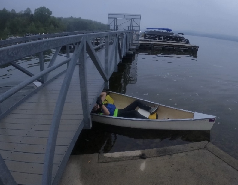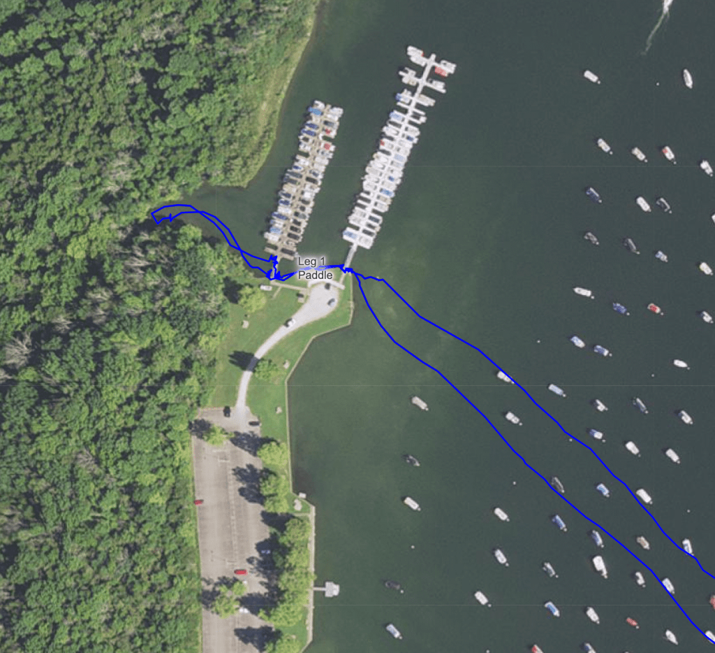 After the paddle we rode our bikes uphill to the start of the O-Course section. This was a fun 12 km trek around the woods, picking up the CP’s over the next three hours. I’m getting a bit more comfortable with the orienteering maps scale and level of detail. We hopped on our bikes and biked around the east side of the lake, making our way to the next TA at the dam. From there, we had a fairly long (15.7 miles) trek around the west side of the lake and cutting over on the causeway. This was all on a very well marked trail and for teams with more gas it would have made a lovely trail run! I was unfortunately dealing with an achilles tendon issue that made uphill trekking pretty painful and not super fast. We got the job done in 6 hr 15 mins, a bit slower than ideal. We hiked into the TA, which was also the start/finish area pretty foot sore and more than ready for a snack! I’m not sure if we knew beforehand about a time cutoff for the next section but we made it with just a few minutes left. Brian told us we could proceed on the paddle if we went directly to the dam and did not stop for any CP’s. Since we still had about 3 1/2 hrs of racing left and our bikes were down at the dam, we changed our shoes, had a snack (I enjoyed an ice cold beer), we set out on paddle #2! This was a straight forward, flat water paddle a little over 4 miles and we did it in less than an hour. From here it was a quick 11 mile bike back to the finish!