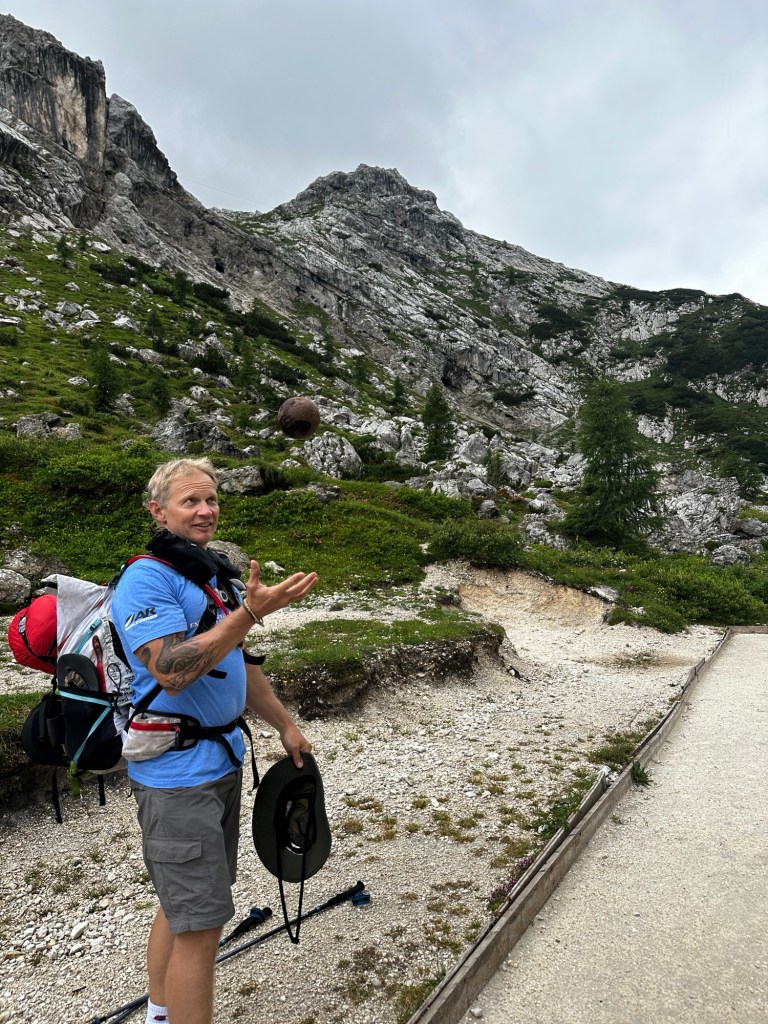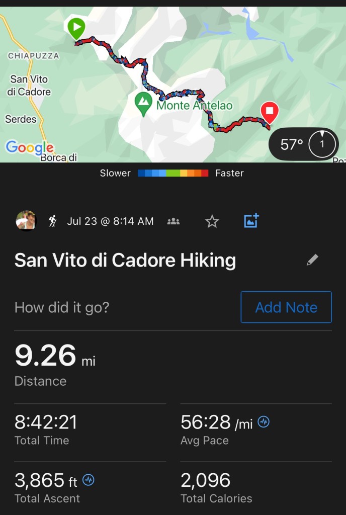 Leaving the bocci closet behind, we made our way across a plateau, working ever upward as we skirted Mt. Antelao. You’ll notice a lack of pictures so far, due to Steve insisting on “big hooves” and a quick pace.