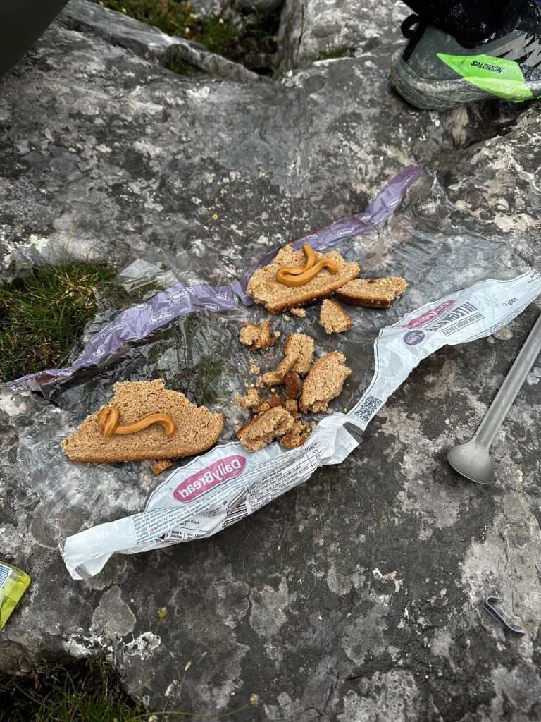 The next order of business was to find a drier and flatter location for some lunch as we were all pretty hangry at this stage. We found a lovely flat rock and broke out the bread that had been traveling in packs for the last 4 days.
