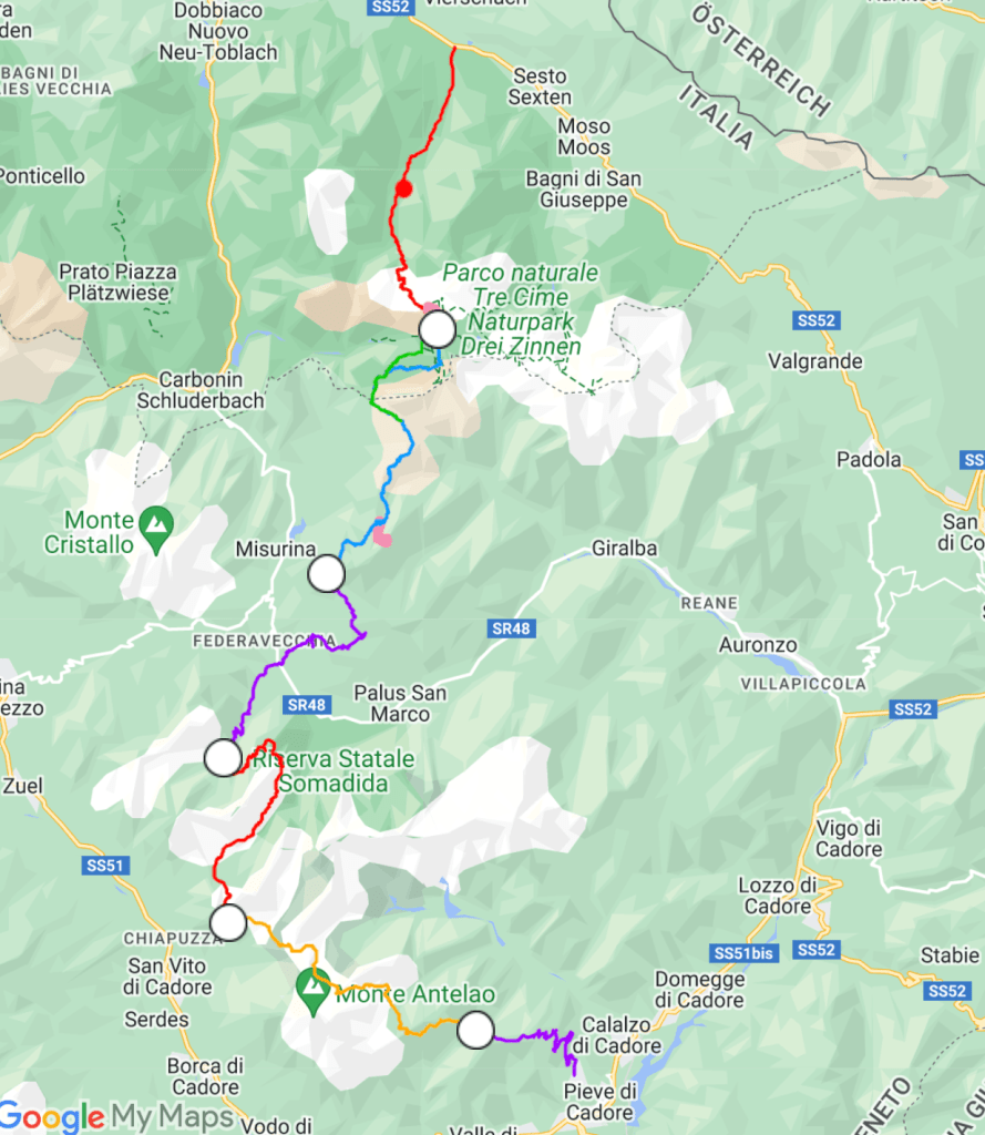 - Busses in rural areas are hit or miss. Carry cash for them as most of the ones we tried outside of Rome didn’t have a working tap and pay. Some bus lines require online ticket purchase with no other way to get tickets. I’m not exactly sure of how we navigated from Pieve Di Cadore back to our parking lot at the trailhead but it involved no less than 5 busses. We missed the 030 bus that went clockwise back to the start and ended up catching one going counterclockwise. First bus drove to a main terminal where we were told to move to another bus. This bus continued and then told us to get off at a random roadside bus stop and wait for another bus. The last of these finally got us to the tourist hell of Lake Misurina. The connection north of Lake Misurina was one that required online purchase of tickets and it dropped us at Dobbiaco where we took our final bus towards San Candido.