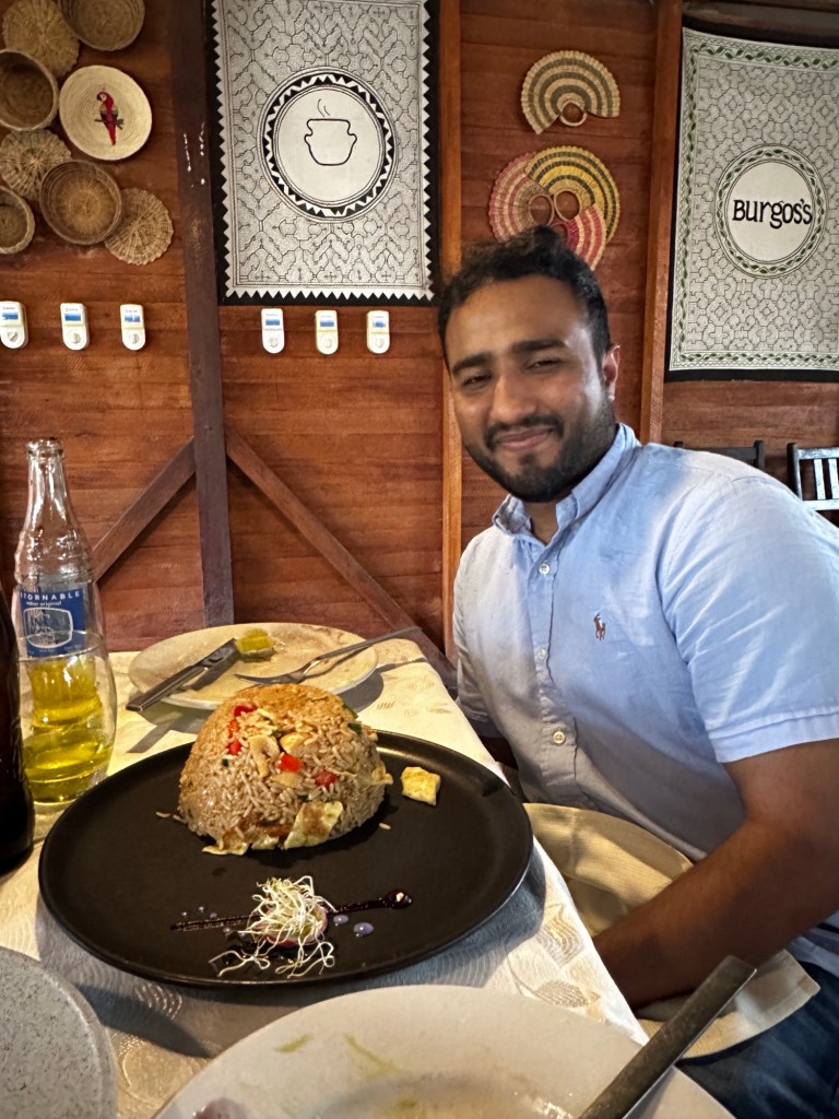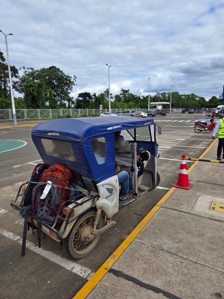 Landing in Puerto Maldonado about 2 hours behind schedule, we hopped in the local taxi option – a motorcycle with attached bench seat, ie a rickshaw! Luckily the rest of the day was unstructured so we decided to settle into the hotel and then wander town for dinner.