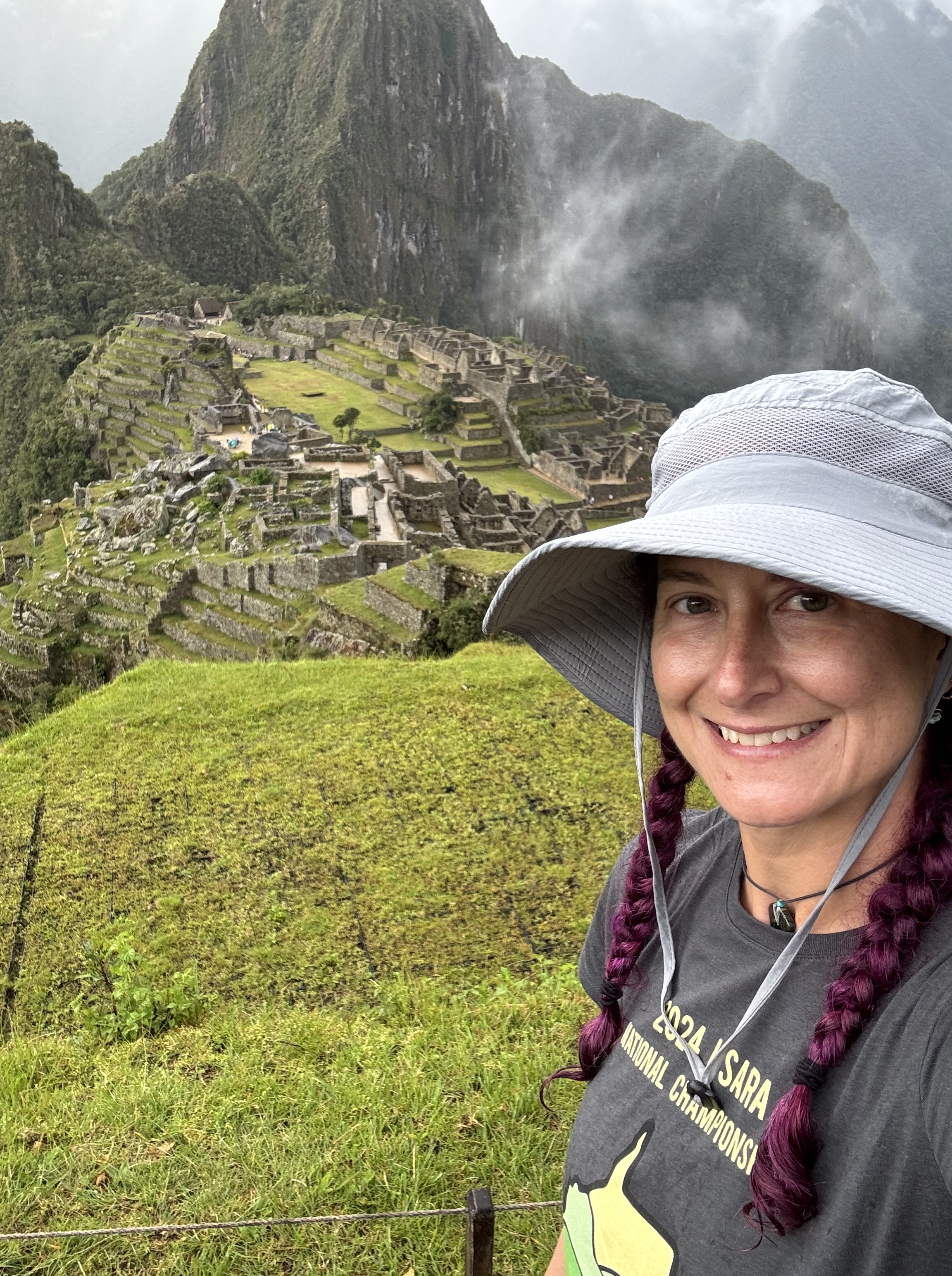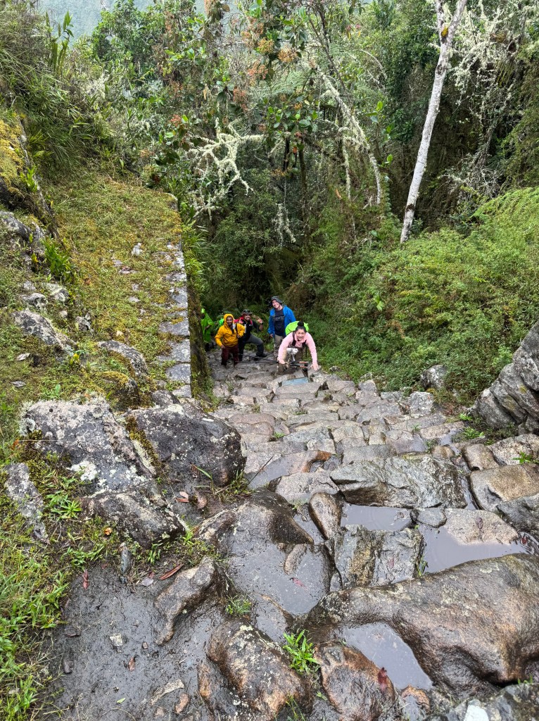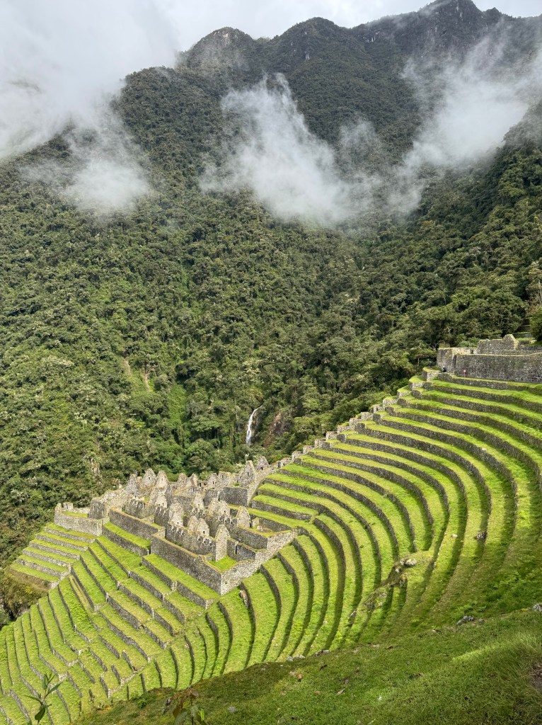 Lucio didn’t rush us out of the Sun Gate and eventually the clouds did lift a bit for a nice view. We continued our hike to the final destination and got our classic Machu Picchu pictures.