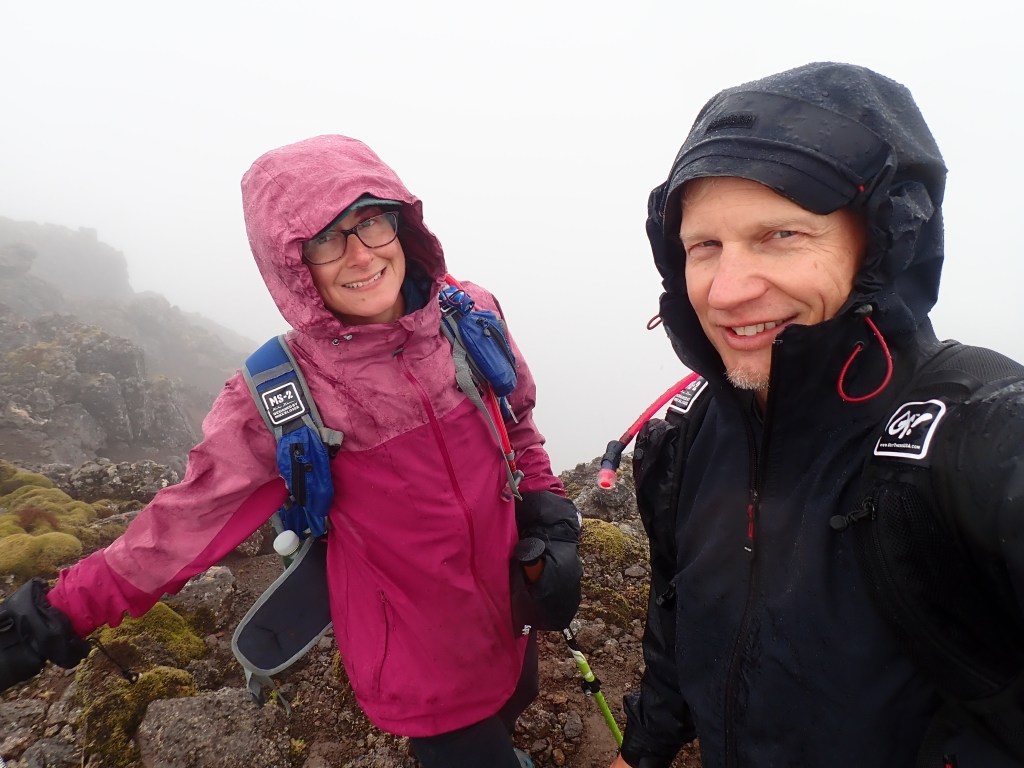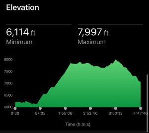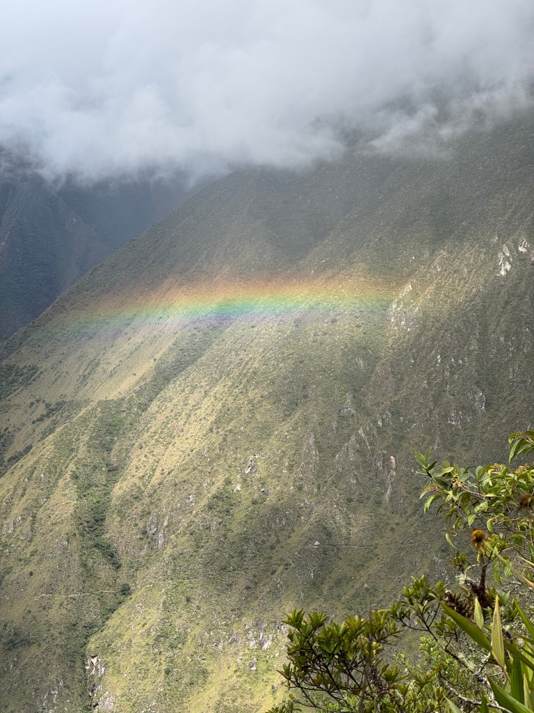 This section of trail was more rolling hills than steep switchbacks. The clouds moved in and a drizzle made sure we didn’t get too hot during this hike. We did see a cool horizontal rainbow across the mountain face!
