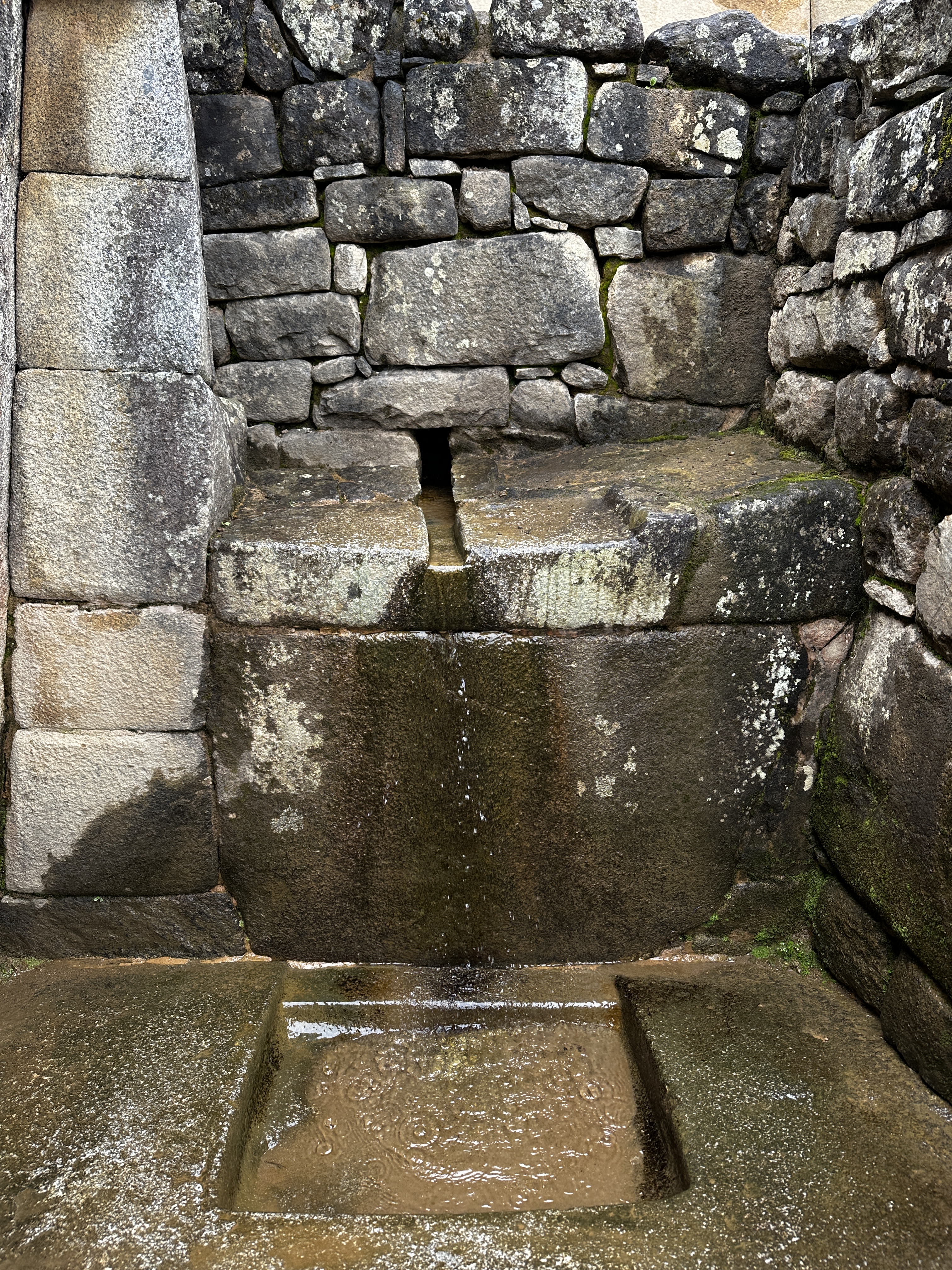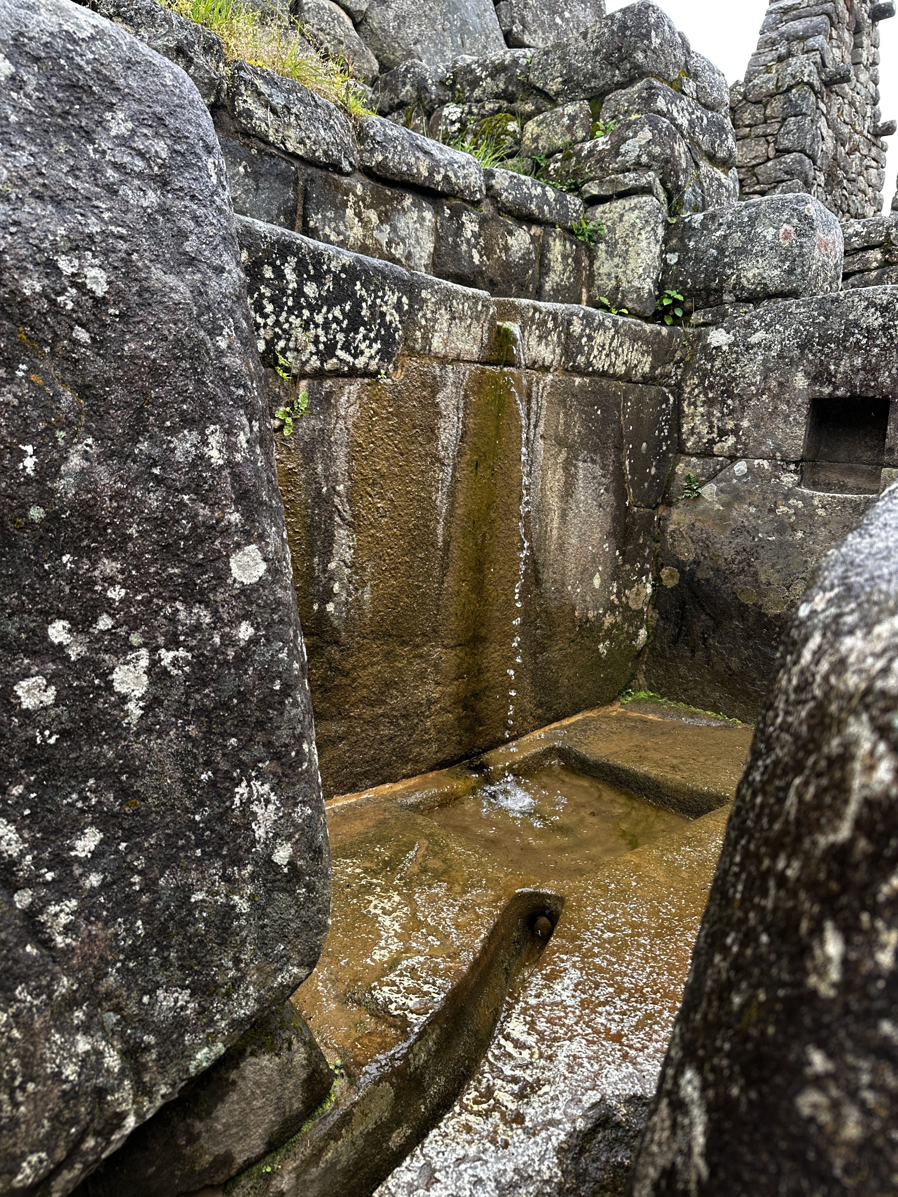 One of the most fascinating things to me was the way the Incan people moved water through their city. There were numerous water fountains and channels connecting them to direct the water down, still flowing today from the rain we had received! Lucio made a point of explaining when the Spanish “found” Machu Picchu they noted in their journals how remarkably clean the city was.