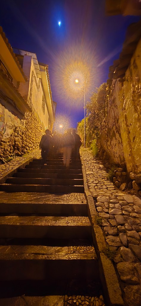 Although the hike was short (less than 5 miles), we were all tuckered out on the van ride back to town. We had some time for showers and relaxing before heading into Cusco for dinner. From our hotel it was a short walk to the main square and all the little shops and restaurants along the way. Ashish picked out a wood fired pizza place he wanted to try.