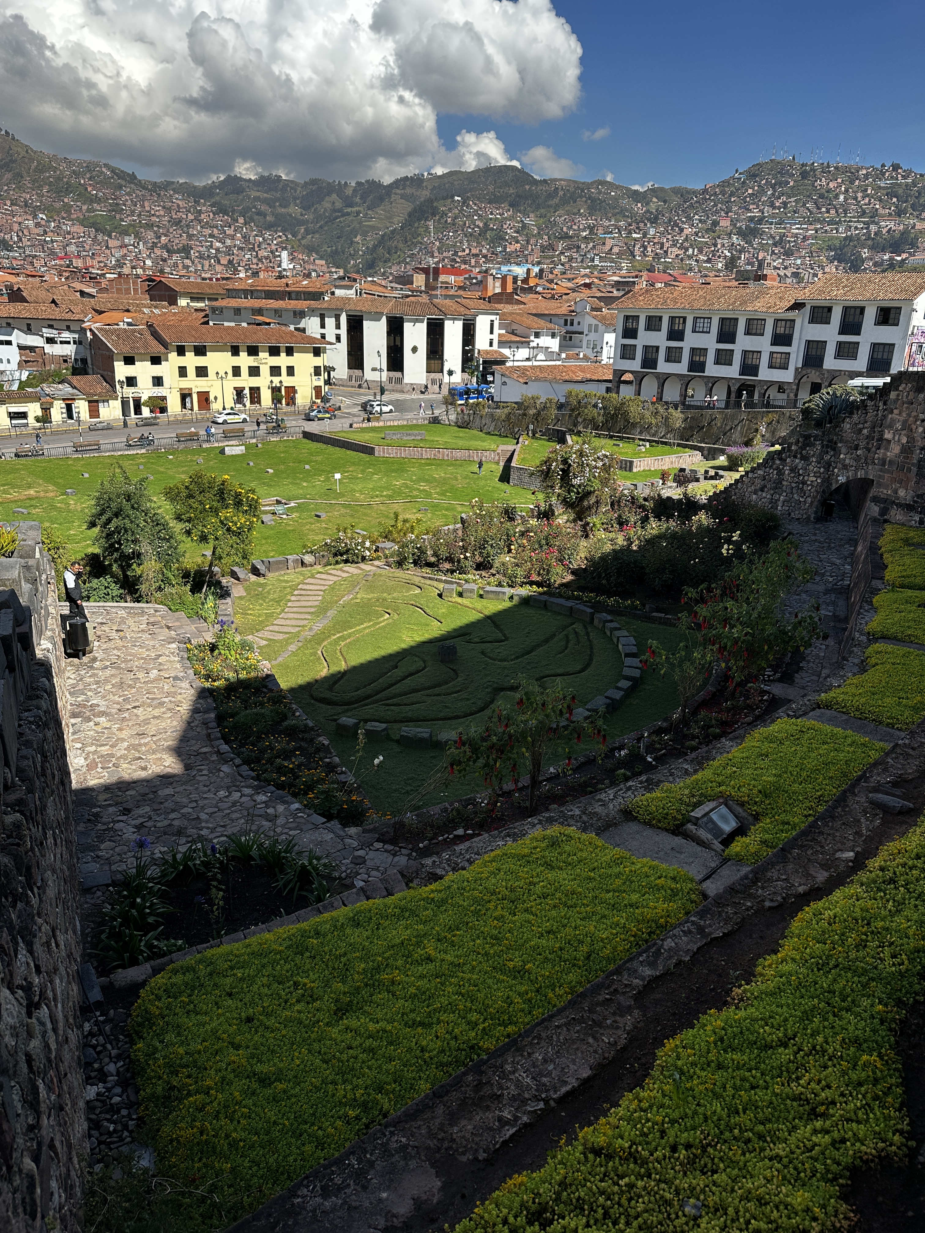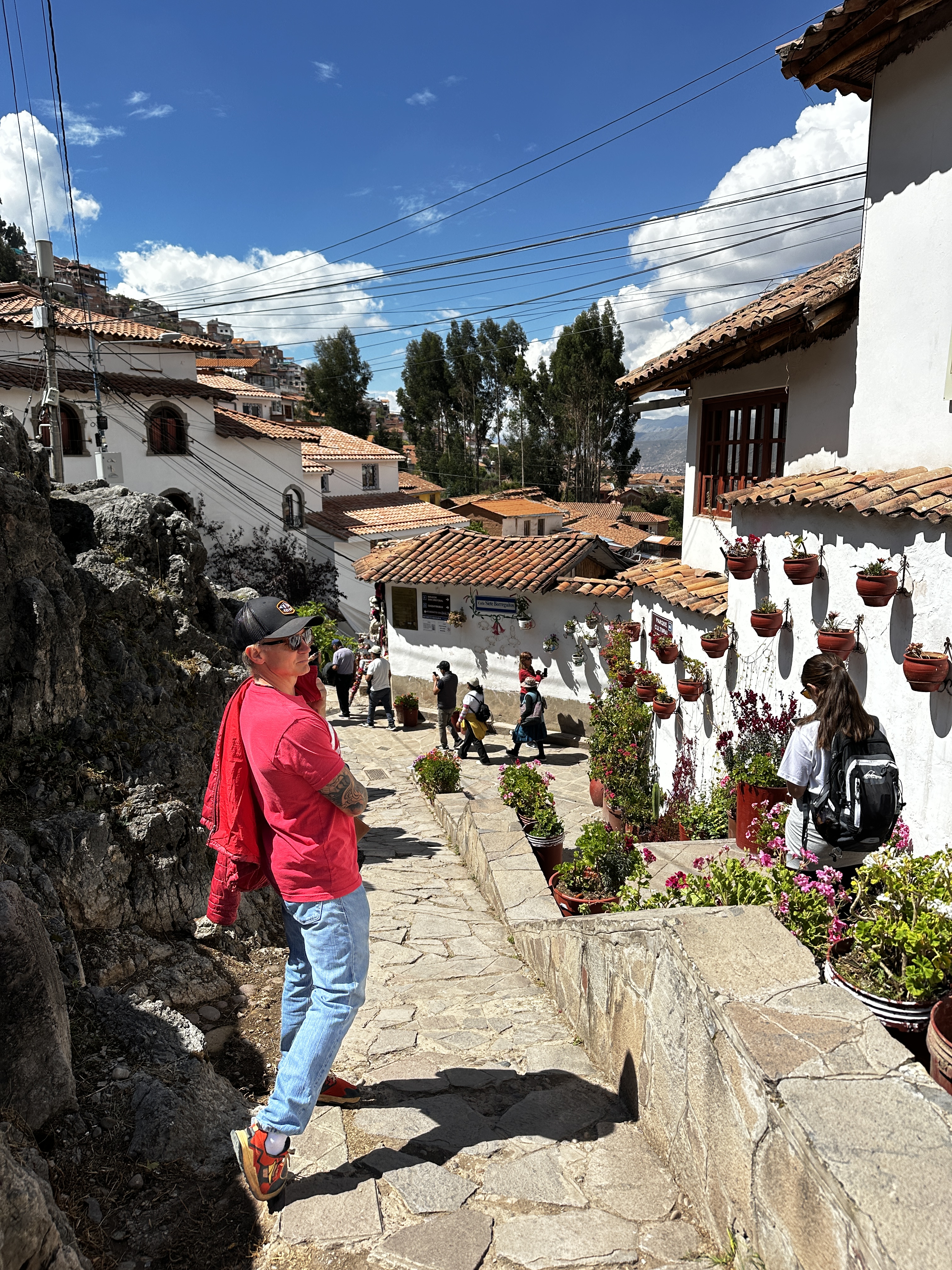 Our final days in Peru centered on the town of Cusco and us just wandering around. We started the day with the self guided tour of the museum across the street from our hotel. This Spanish church & convent was built on top of and with materials from the sacred Inca temple Qorikancha. After seeing Machu Picchu we were all suffering a bit from “stone fatigue” so we cruised through the attractions at a steady clip. Steve did provide some comedic relief by making up stories to go with the gallery paintings depicting various saints and such!