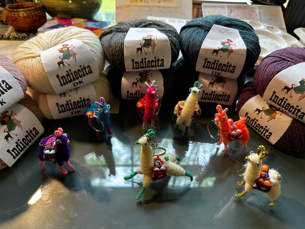 Mission accomplished, the next stop was to enlist the llarmy (llama army)! Steve and I buy some trinket from our travels to use as a Christmas tree ornament and this time it was llama’s! Josh then had the brilliant idea to buy one for each of the kiddos in Sara’s class (his fiancee’ is a elementary school teacher)! While I did not get a picture of all 27 llamas from Josh, here is the small squad that came home with us (and the alpaca yarn that I just could NOT leave behind)!